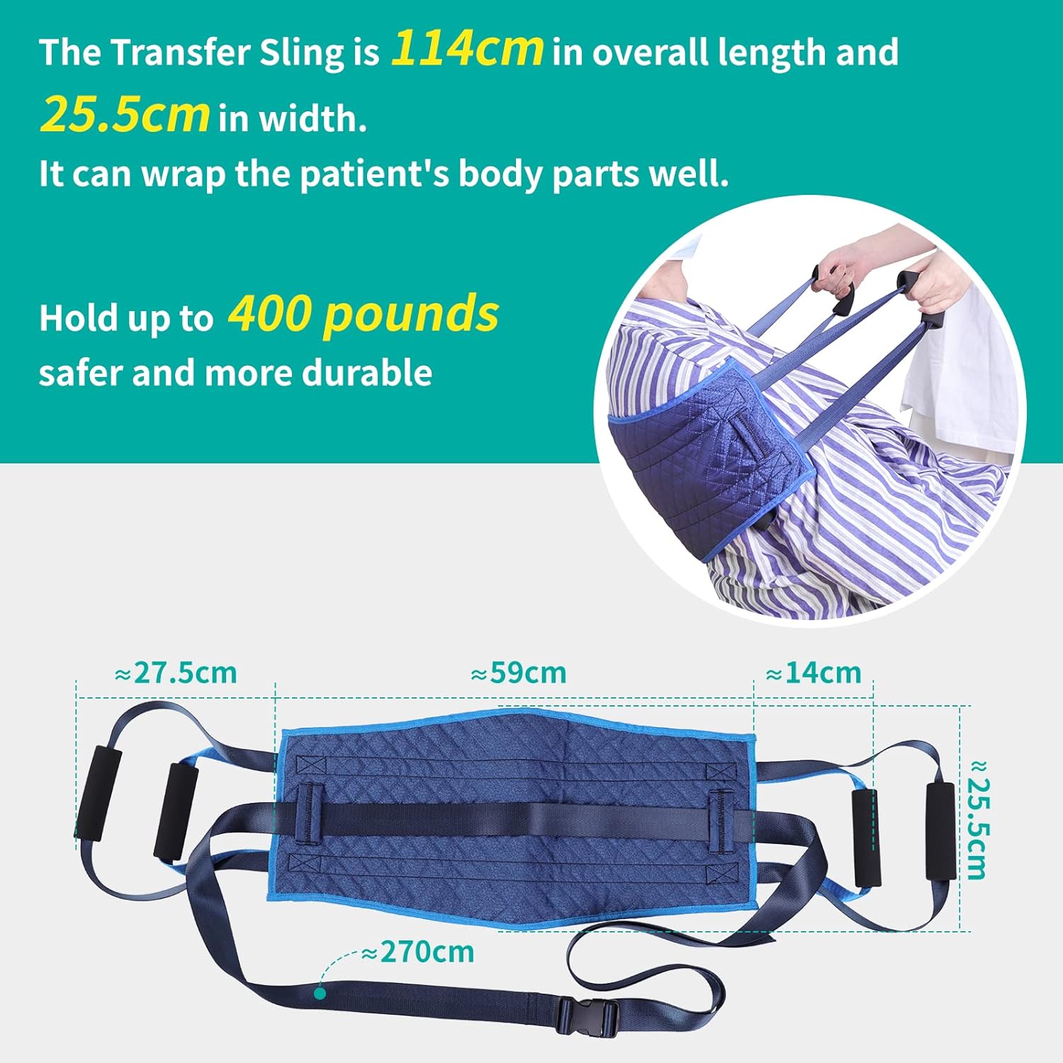 【DURABLE CONSTRUCTION】: Strong load-bearing capacity, single person can be operated, webbing thickened sewing, strong and firm, a single person can easily operate can assist in reducing the burden of care, carrying is also convenient. Hold up to 400 pounds, safer and more durable.