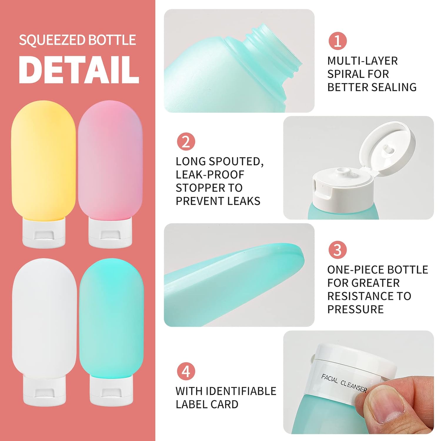 [Travel Toiletry Bottles TSA Approved] Our 2oz sub-bottling design are TSA-approved, meaning it can pass airport security checks, making it perfect for airplane travel. These are travel essentials for women
