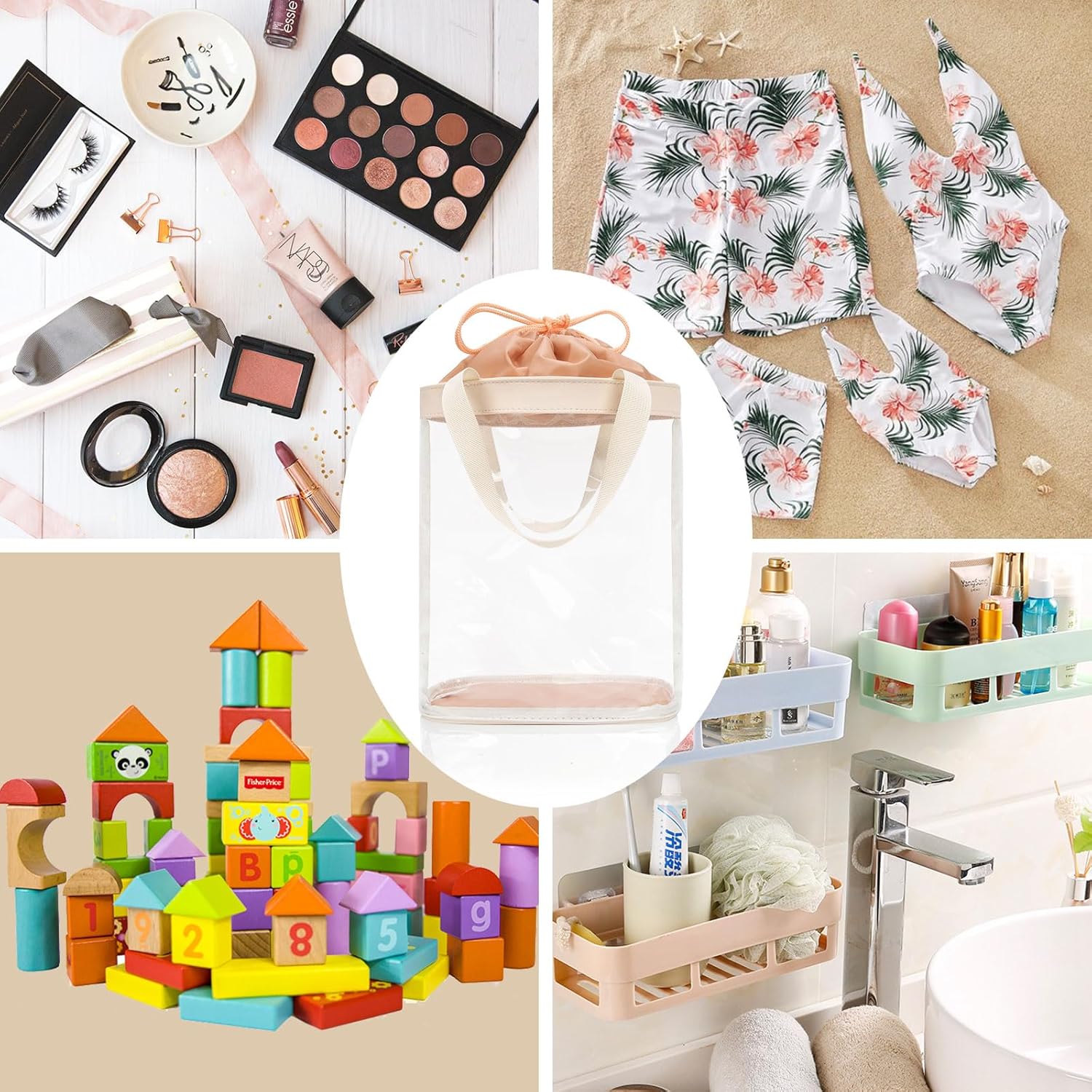 Multifunctional Bag — You can use this clear toiletry travel bag as cosmetics bag, travel bag, make up bag, gym bag, storage bag, waterproof bag, gift bag, swim bag, general packaging. Great for traveling, outdoor, business trip, camping, travel, gym room,beach, swimming pool…