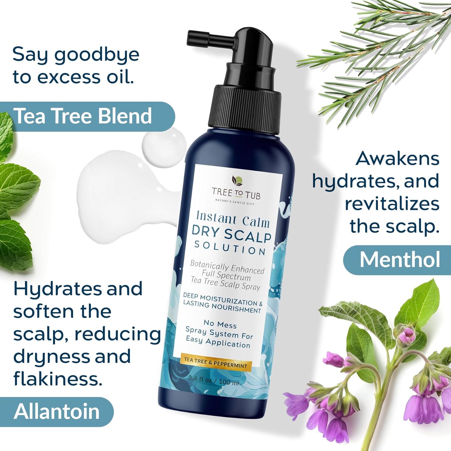 Tree To Tub Dry Scalp Spray – Intensive Scalp Moisturizer for Men & Women – Tea Tree Leave in Scalp Moisturizer for Dry Scalp, Full Spectrum Scalp Spray for Flaky Buildup & Excess Oil, Scalp Care