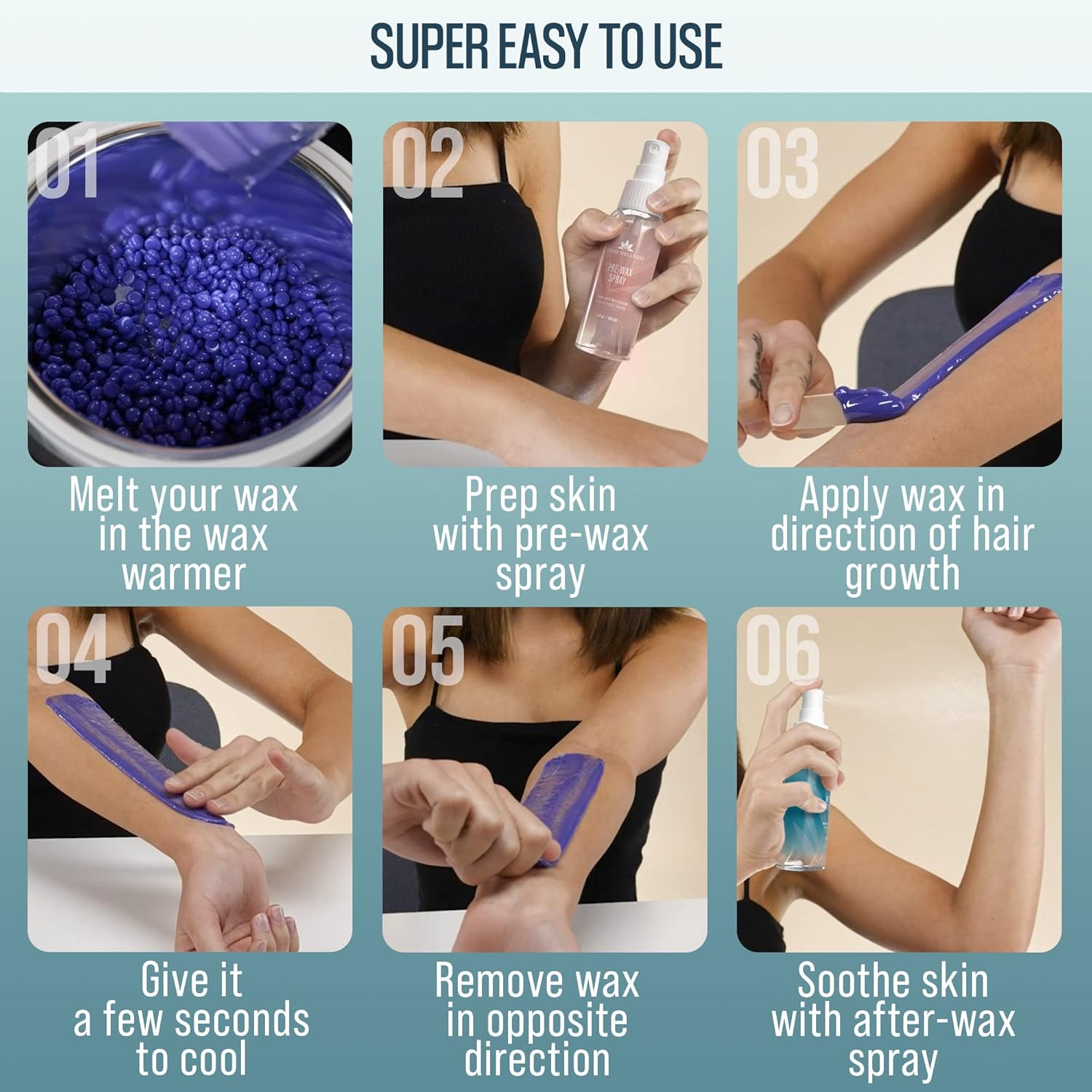 Super Easy To Use – Our kit includes a pre-wax spray and an after-wax spray to prep and soothe your skin alongside our waxing beginners best friend, the Wax-like-a-pro waxing guide, which has useful tips from practicing estheticians.