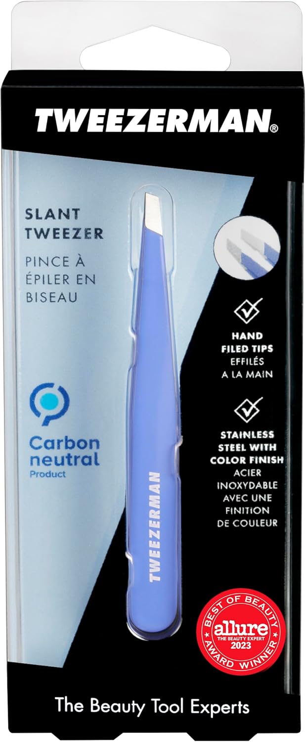 Tweezerman Stainless Steel Slant Tweezer – Eyebrow Tweezers for Women and Men (Lapis Blue)