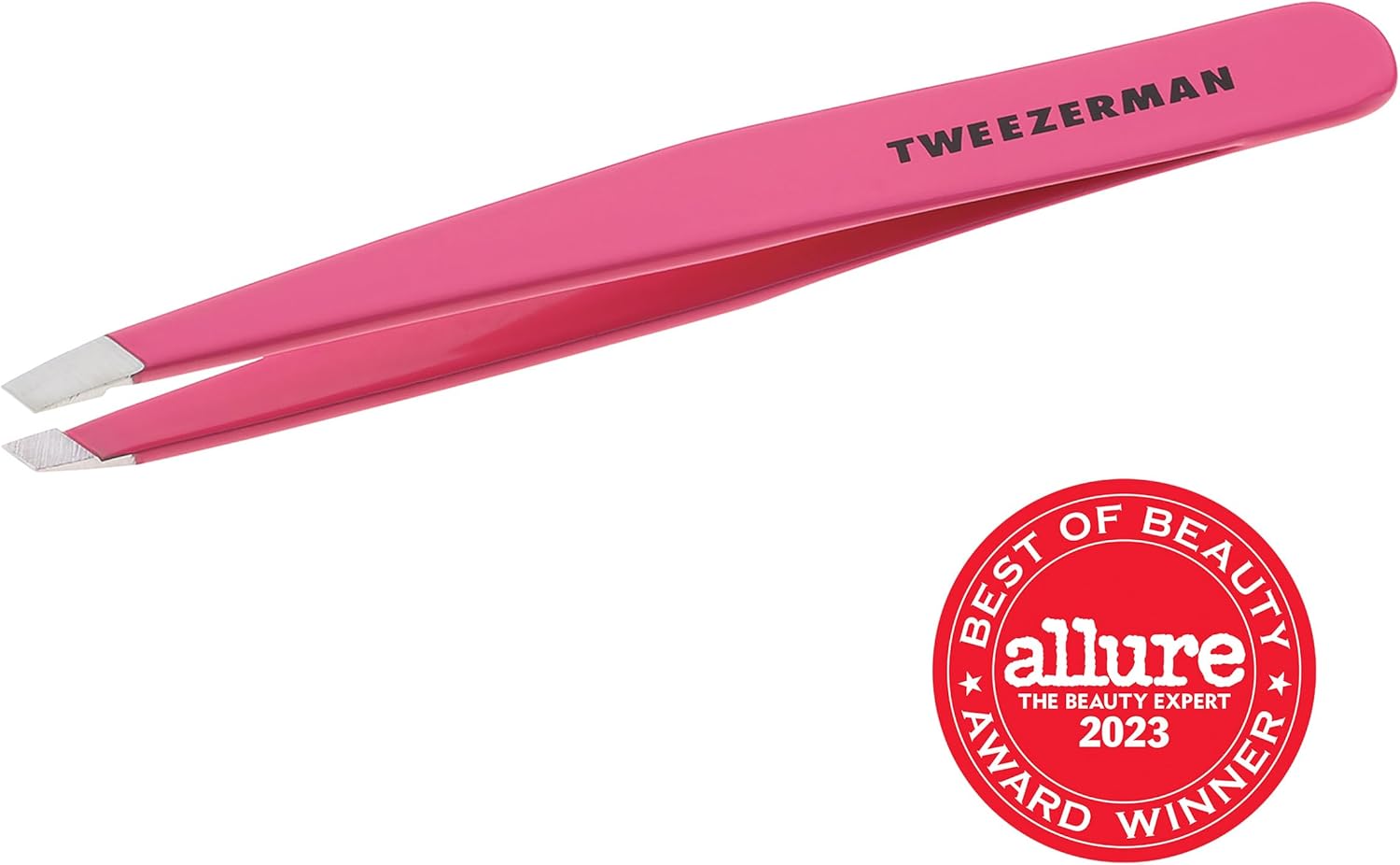 Tweezerman Stainless Steel Slant Tweezer – Eyebrow Tweezers for Women and Men (Neon Pink)