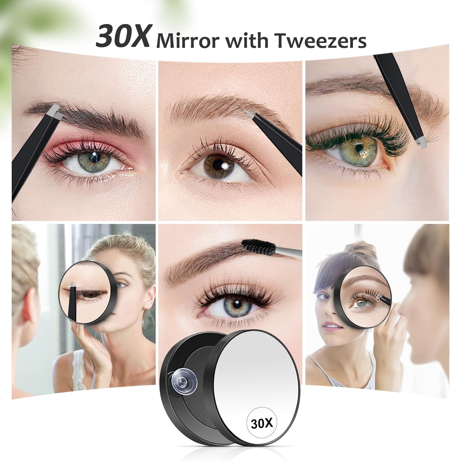 ❤️30X Magnifying Mirror: for fragile hairs, you can use the magnifying mirror to hold the hair root and pull it out, eliminating the root from staying on the pore.
