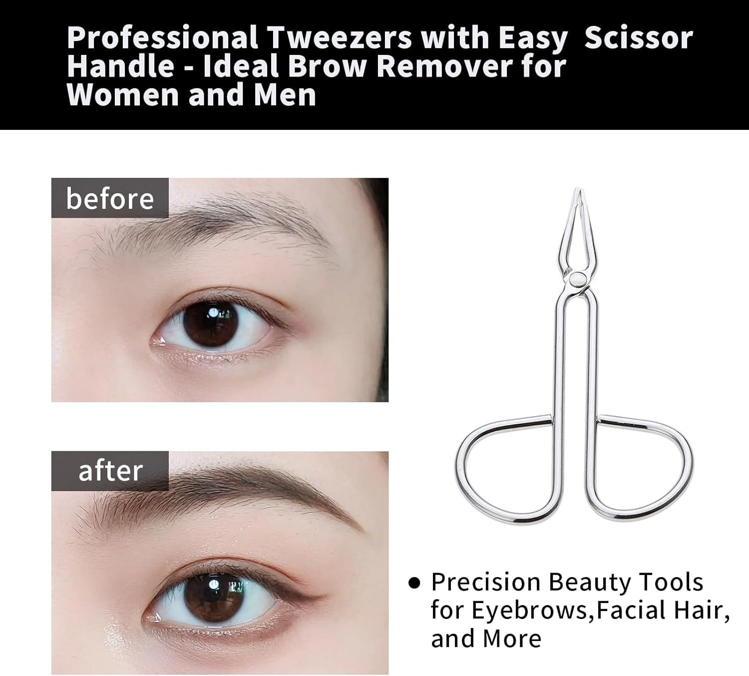 **1. Tweezers Scissor Handle Set:** Experience precision grooming with our tweezer set featuring 3 silver slanted tip tweezers and 3 silver straight tip eyebrow tweezers. Two different styles cater to your diverse daily needs, offering flexibility and accuracy in your beauty routine.