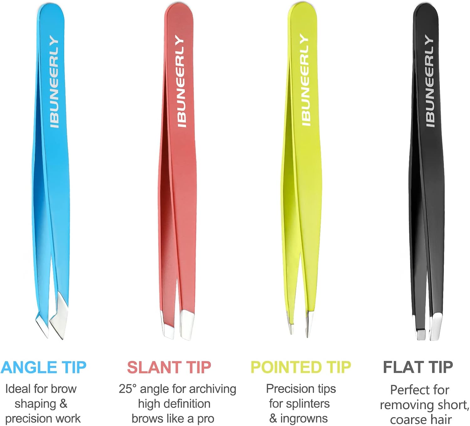 ★【Best Tweezers for Women】: The tweezers set come with 4 different colors eyebrows tweezers: slant tip, angle tip, flat tip and pointed tip. Perfect for eyebrows shaping, ingrown hair, first aid, facial nose hair, meet all your any skin care or beauty routine.