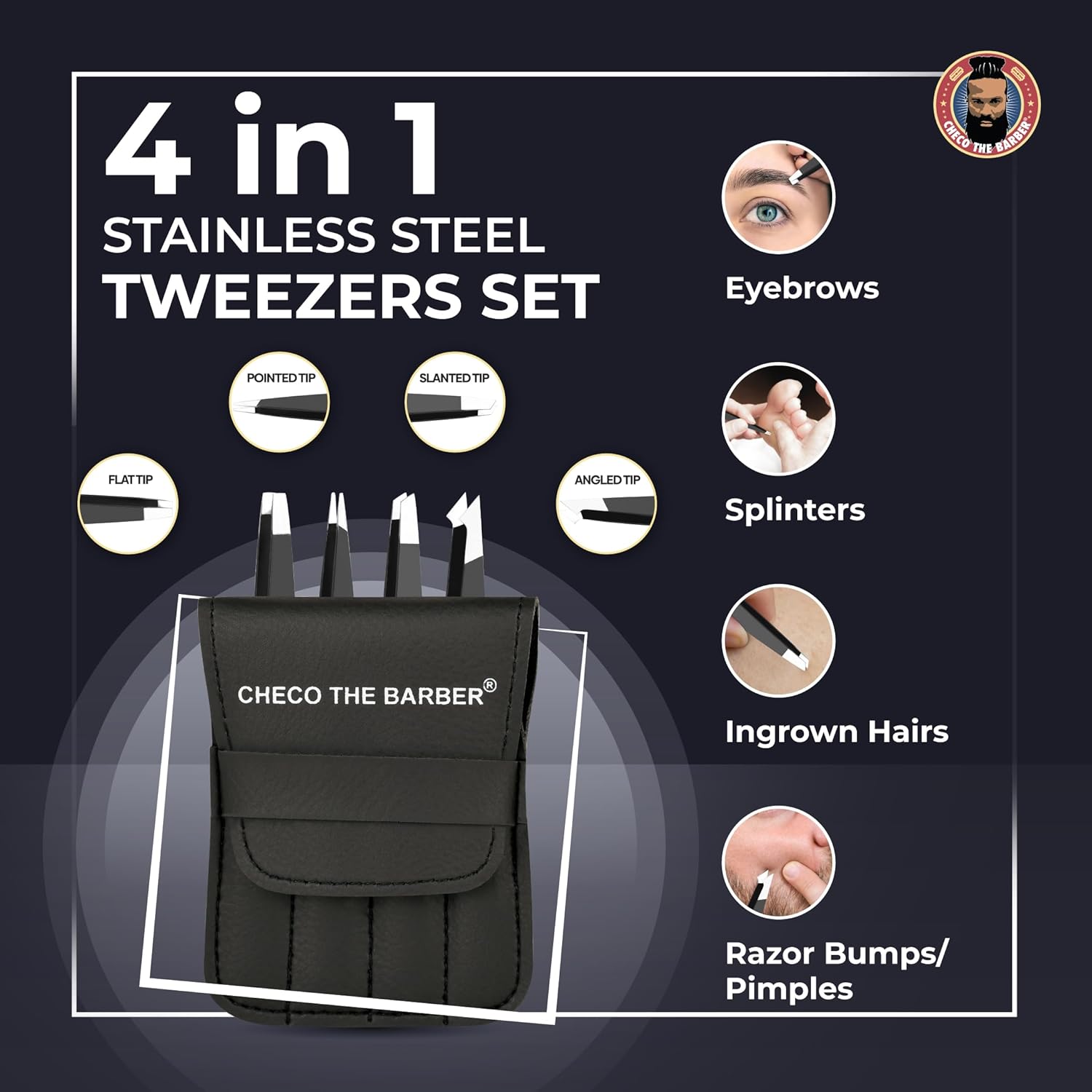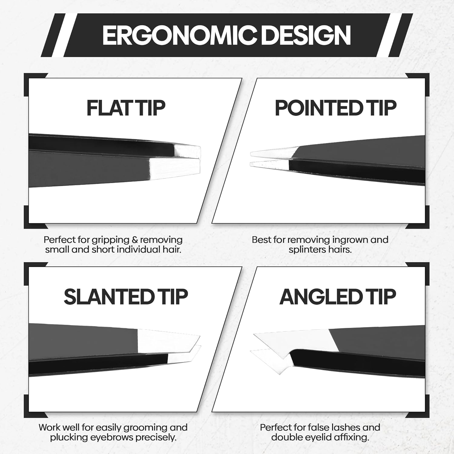 MULTIFUNCTION: 4 in 1 tweezers set, this set contains a pair of classic, oblique, pointed and oblique pointed tweezers.