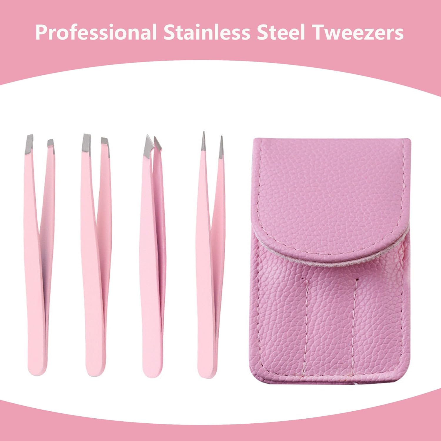 Tweezers Set,Professional tweezers for women facial hair,Eyebrow tweezers for men,Best precision tweezers for plucking fine hair,chin,Ingrown, Splinter Removal(pink)