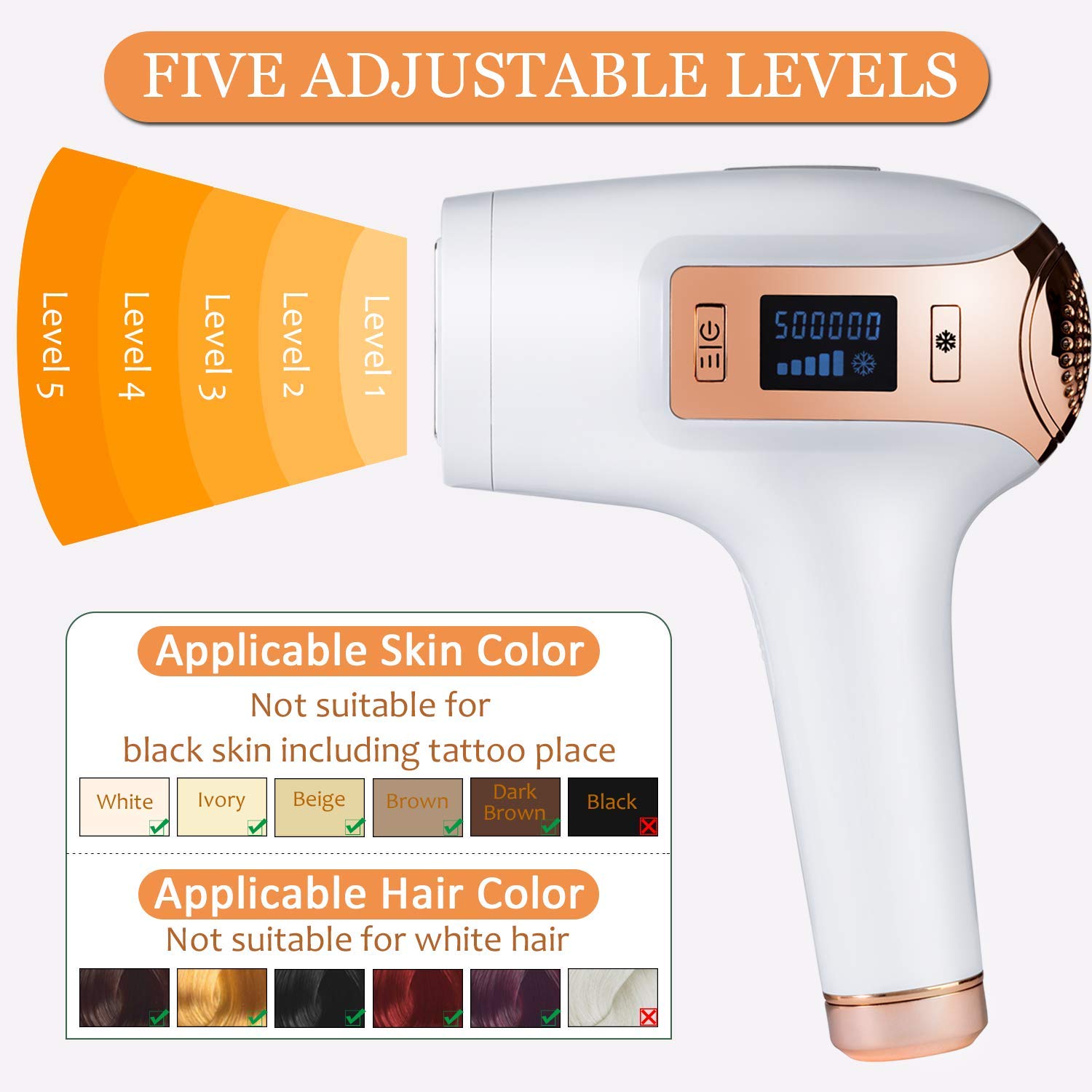 🌻Suitable Hair Color & Skin Color: Uaike hair removal system works best on dark hair and light skin. It is suitable for black, dark blonde, brown and red hair, and for skin color from white to dark brown. It is not suitable for dark skin and white hair.