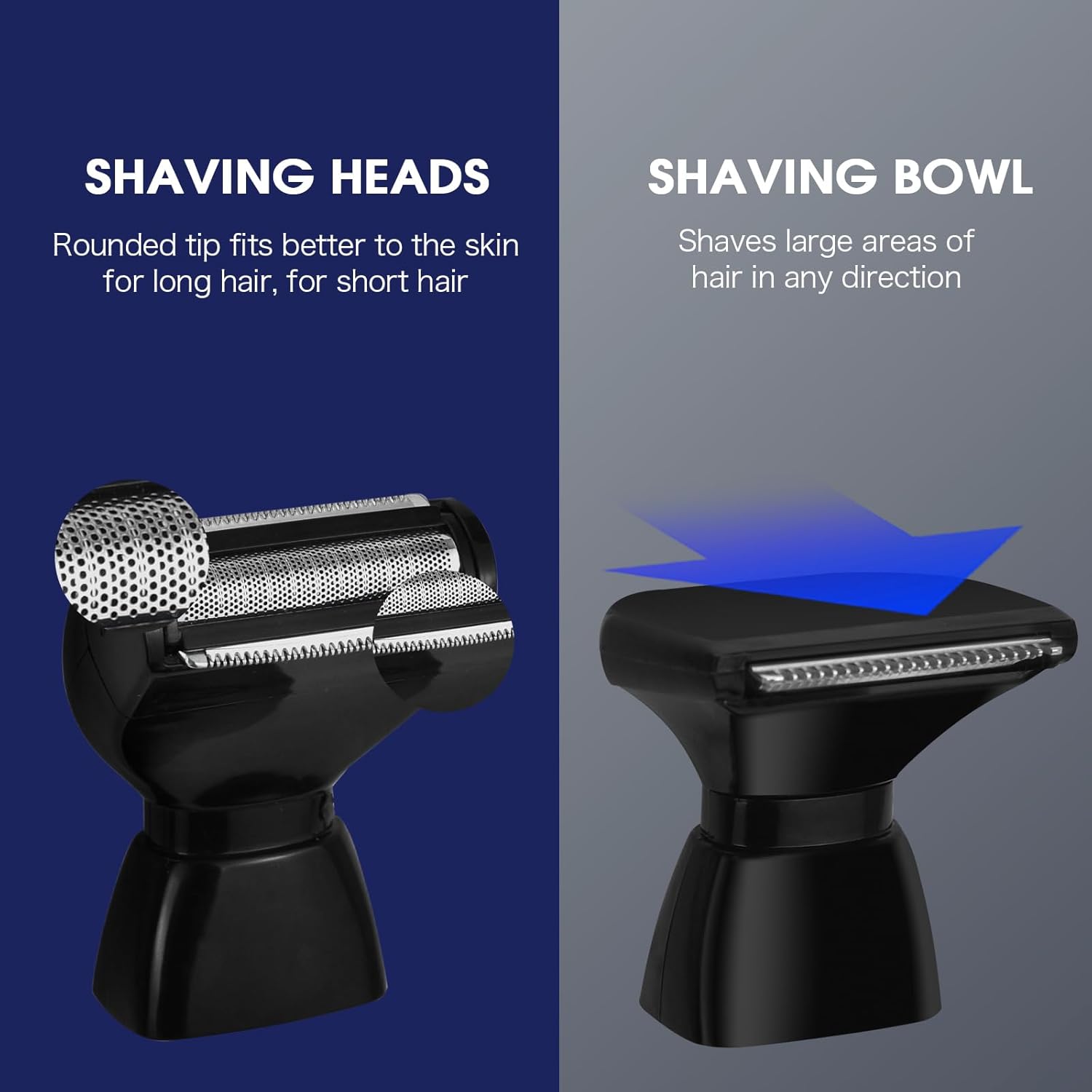 2 interchangeable attachment shaving heads allows you to easily reach all areas of the back.A Nose Hair Trimmer Set are suitable for shaving small local areas.The curved handle is ergonomic, and the angle can be adjusted according to needs.