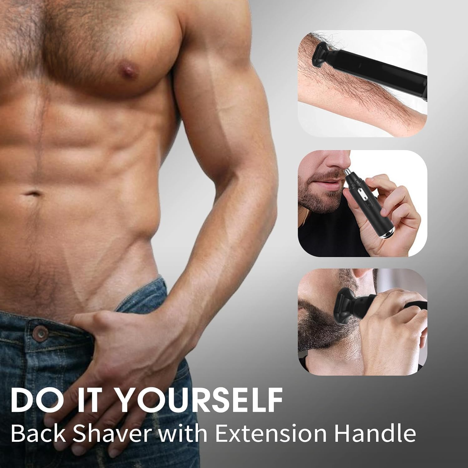 Ultimate PRO Back Shavers for Men Body Shaver with Adjustable Extreme Reach Handle, Body Groomers Men’s Electric Back Shaver with Nose Hair Trimmer Set and 2 Shock Absorber Flex Heads