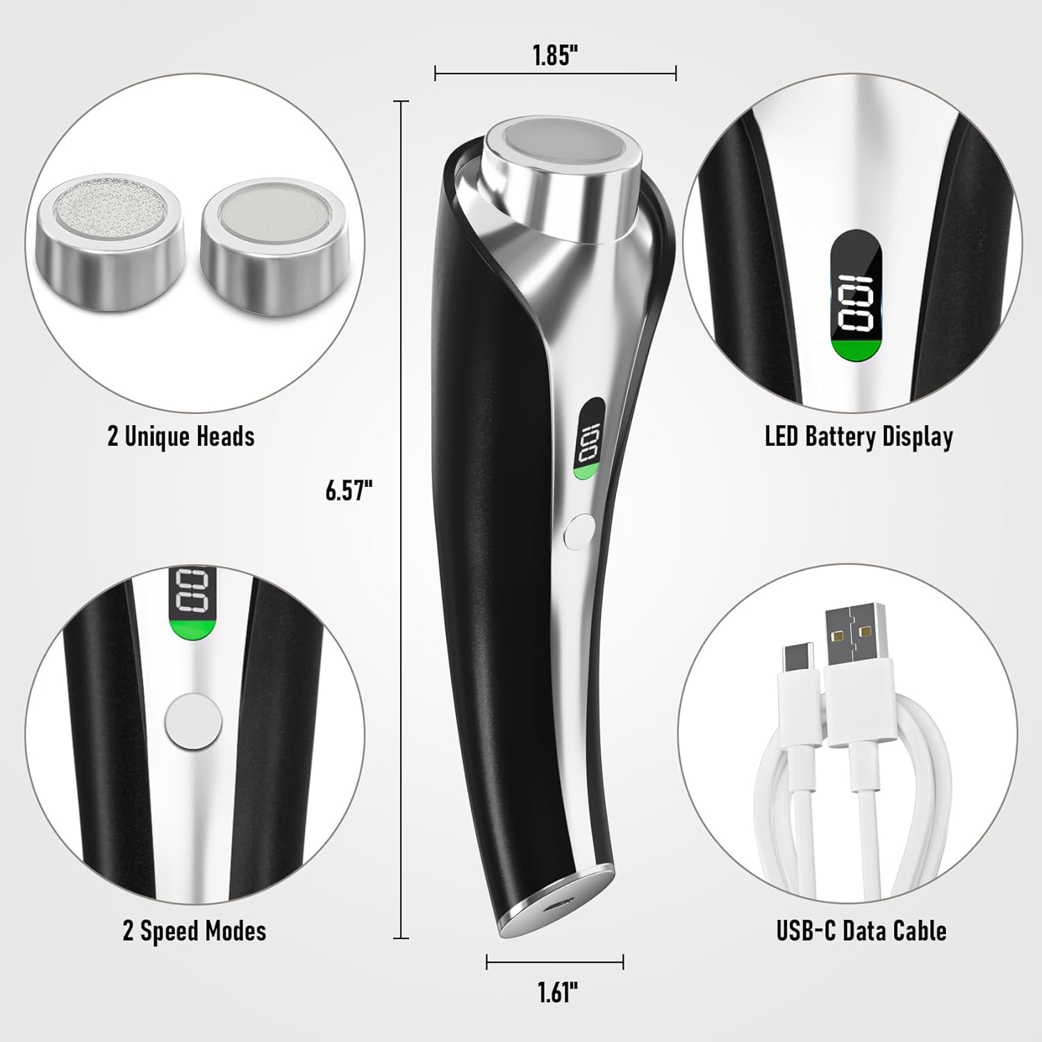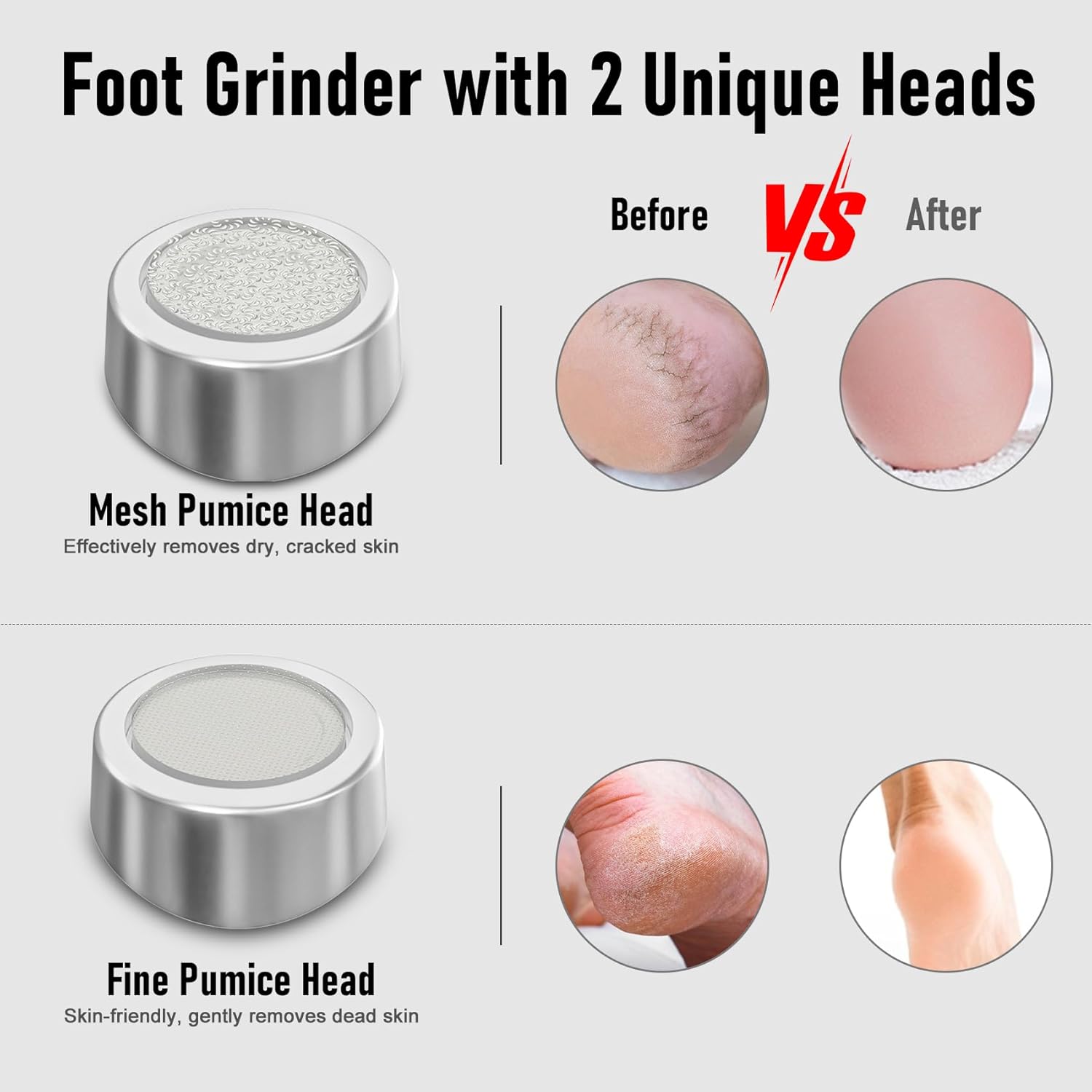Smart and Efficient Callus Removal: Equipped with 2 speed settings and 2 different grinding heads, suitable for different levels of callus. Whether it’s light or heavy callus, this electric callus remover can easily handle it.
