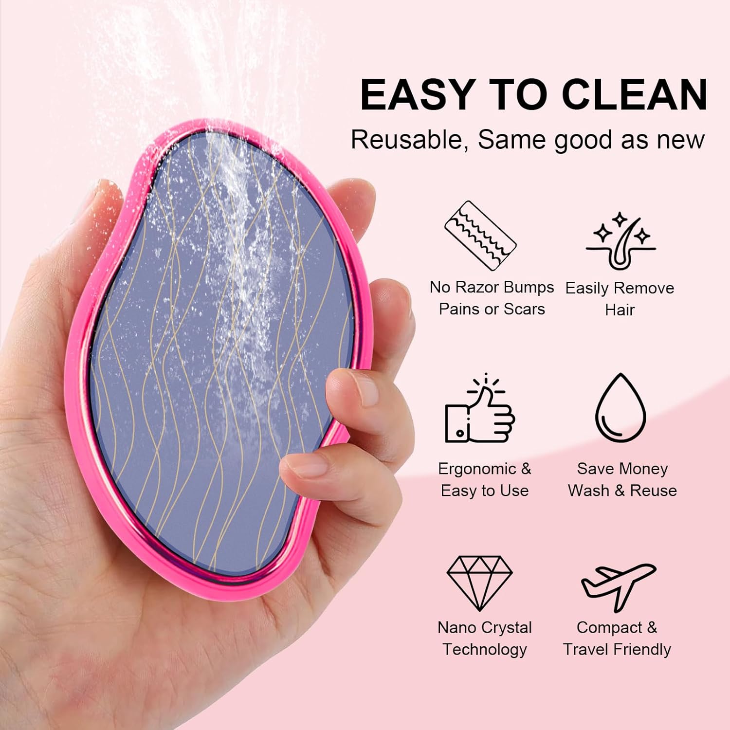 【Easy to Clean and Reusable】The crystal epilator is easy to clean, just rinse with water and a small brush after each use. You can also use this product after your skin has been soaked. No need to replenish or recharge and can be reused for up to 2 years