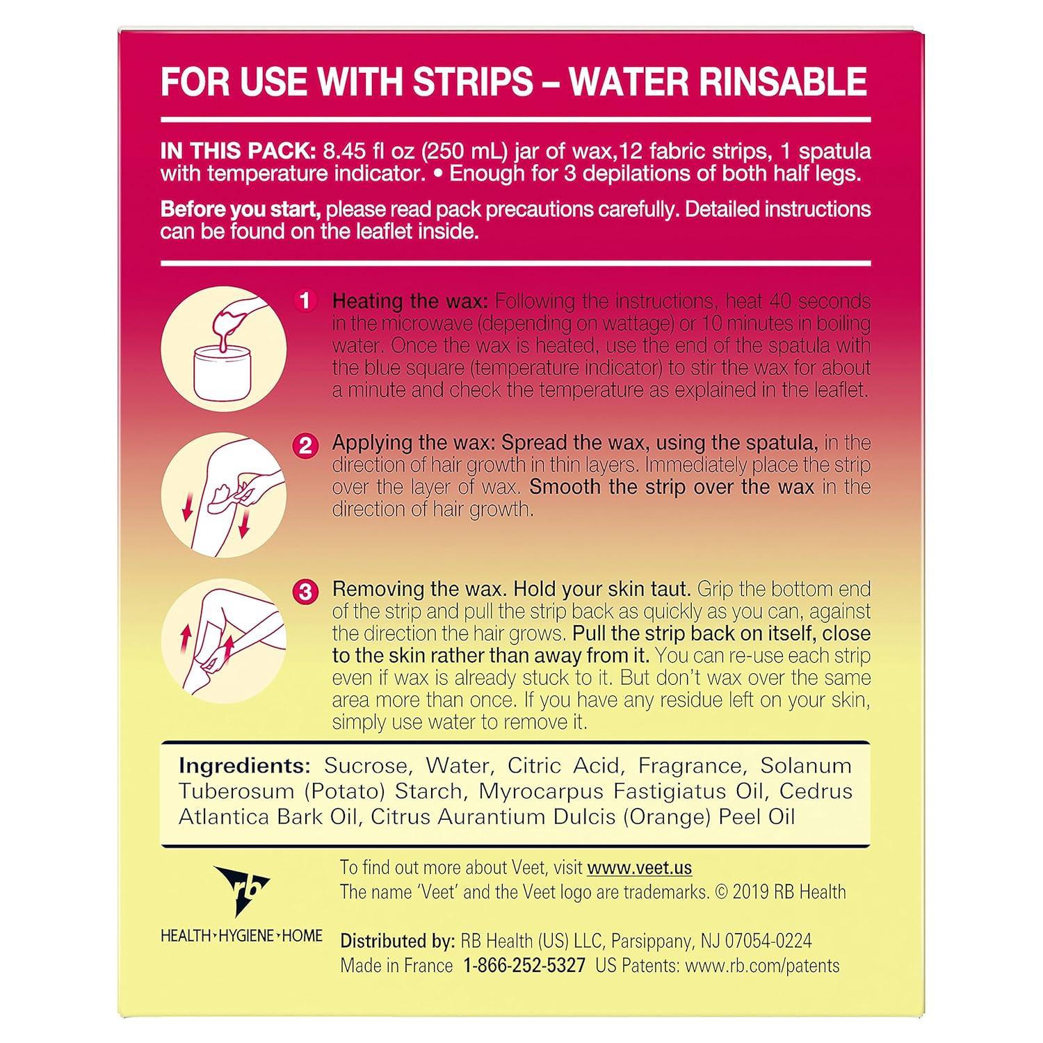 [Temperature indicator]: Veet Sugar wax can be microwaved or heated in boiling water prior to using. Includes spatula with temperature indicator to apply the wax and remove hair