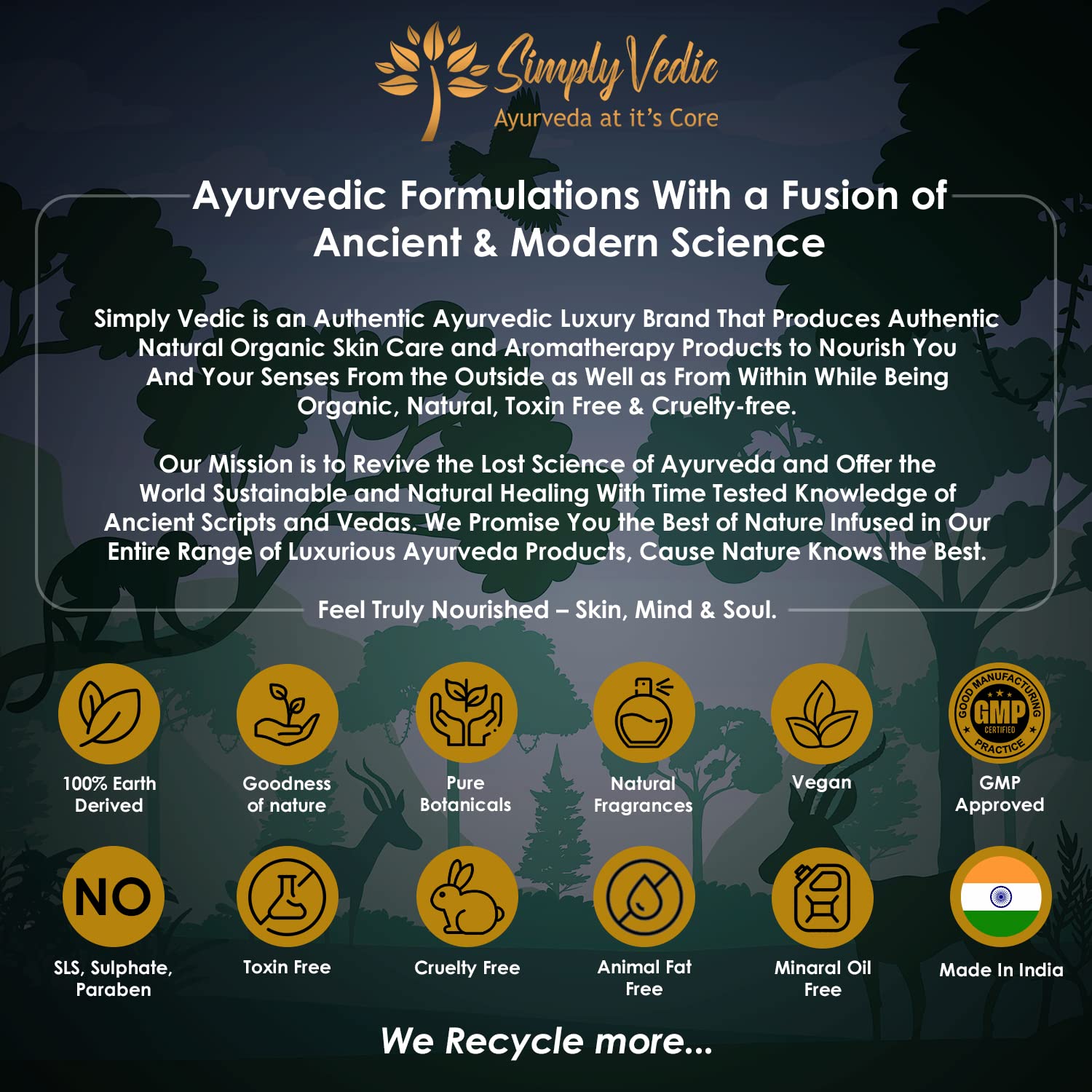 CLEAN FORMULA, SIMPLY NATURAL BOTANICALS: Our Soap Bar are made with Coconut Oil, Castor Oil, Therapeutic Essential Oil, Cold Pressed in Small Batches, No Synthetic Fragrance, Ensuring you a Truly Vedic Soap Bar.