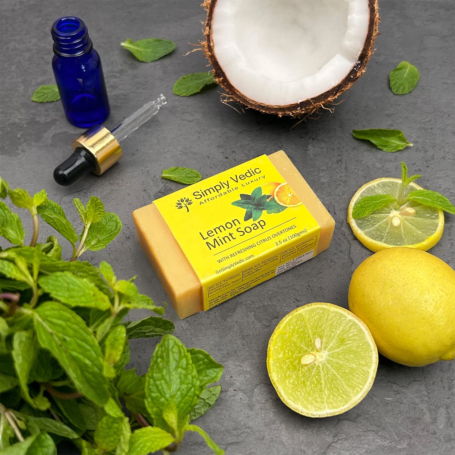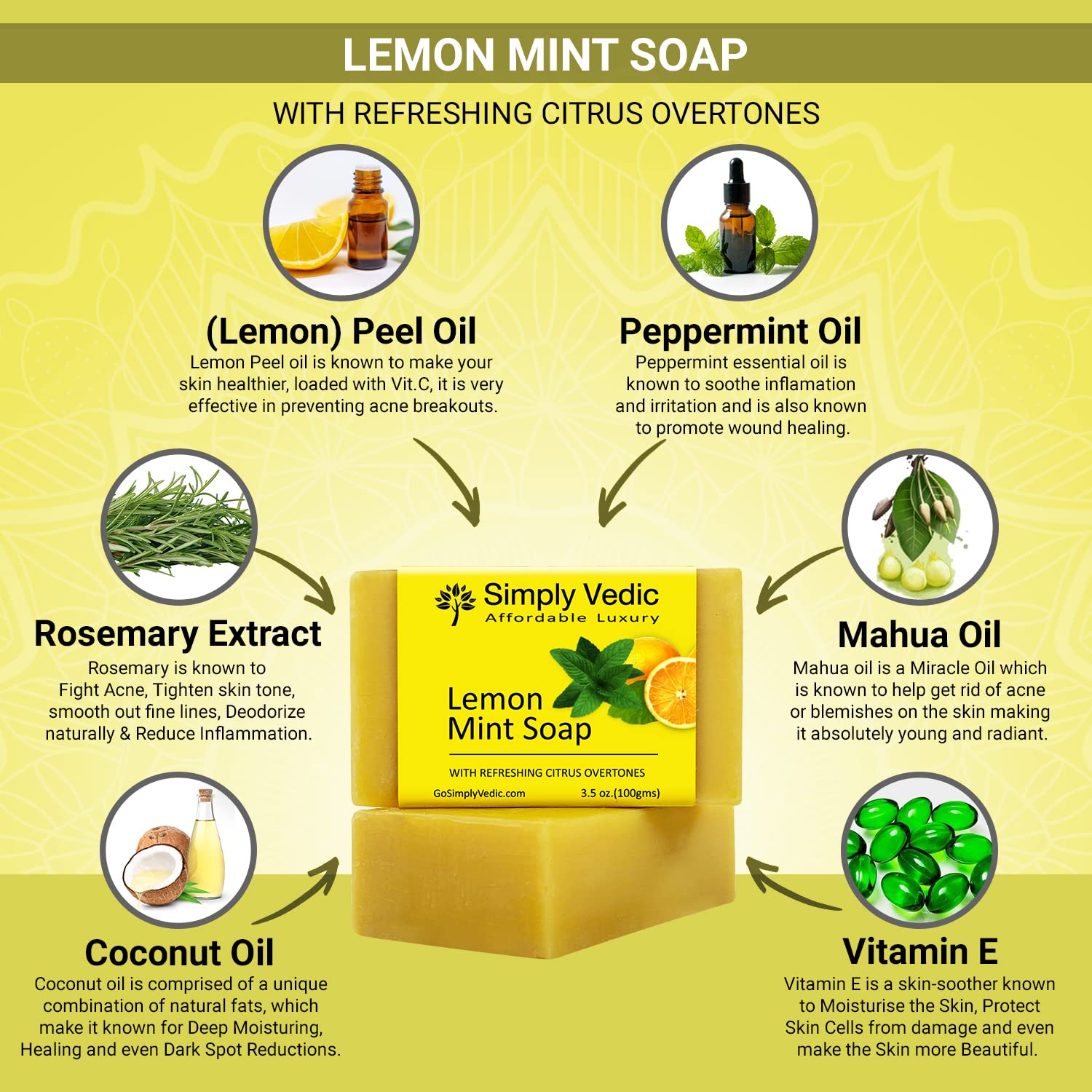 Vit.C 6-Pack Lemon Mint Soap Bar For Body, Hand, Face|Made with Lemon Essential Oil, 100%Vegan Cold Pressed With Coconut Oil for Brightening and a Refreshing bath, Hand-Made (3.5 Oz.X 6)