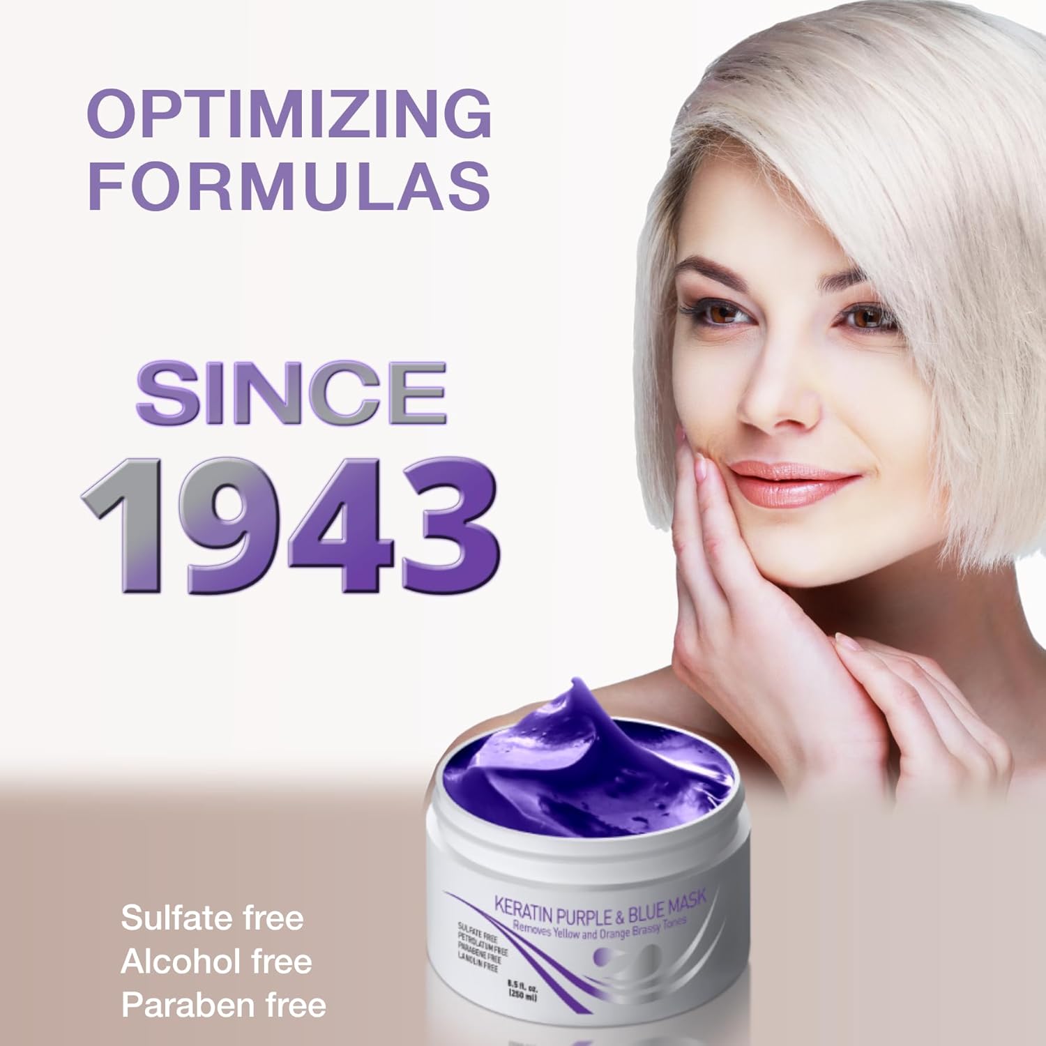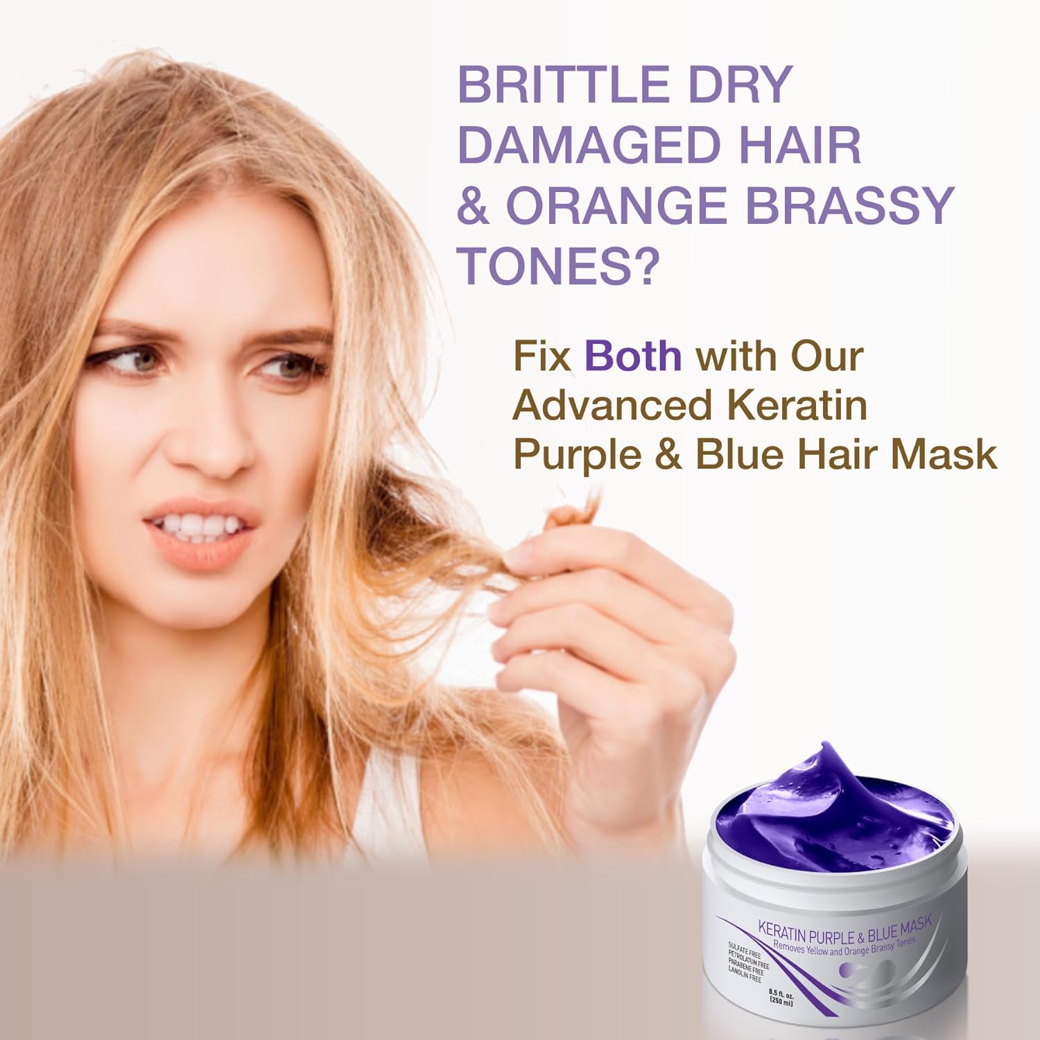 Vitamins Keratin Purple Hair Mask – Violet Blue Protein Deep Conditioner Treatment – Toner for Blonde Platinum Silver Gray Ash or Brown Colored Dry and Damaged Brassy Hair
