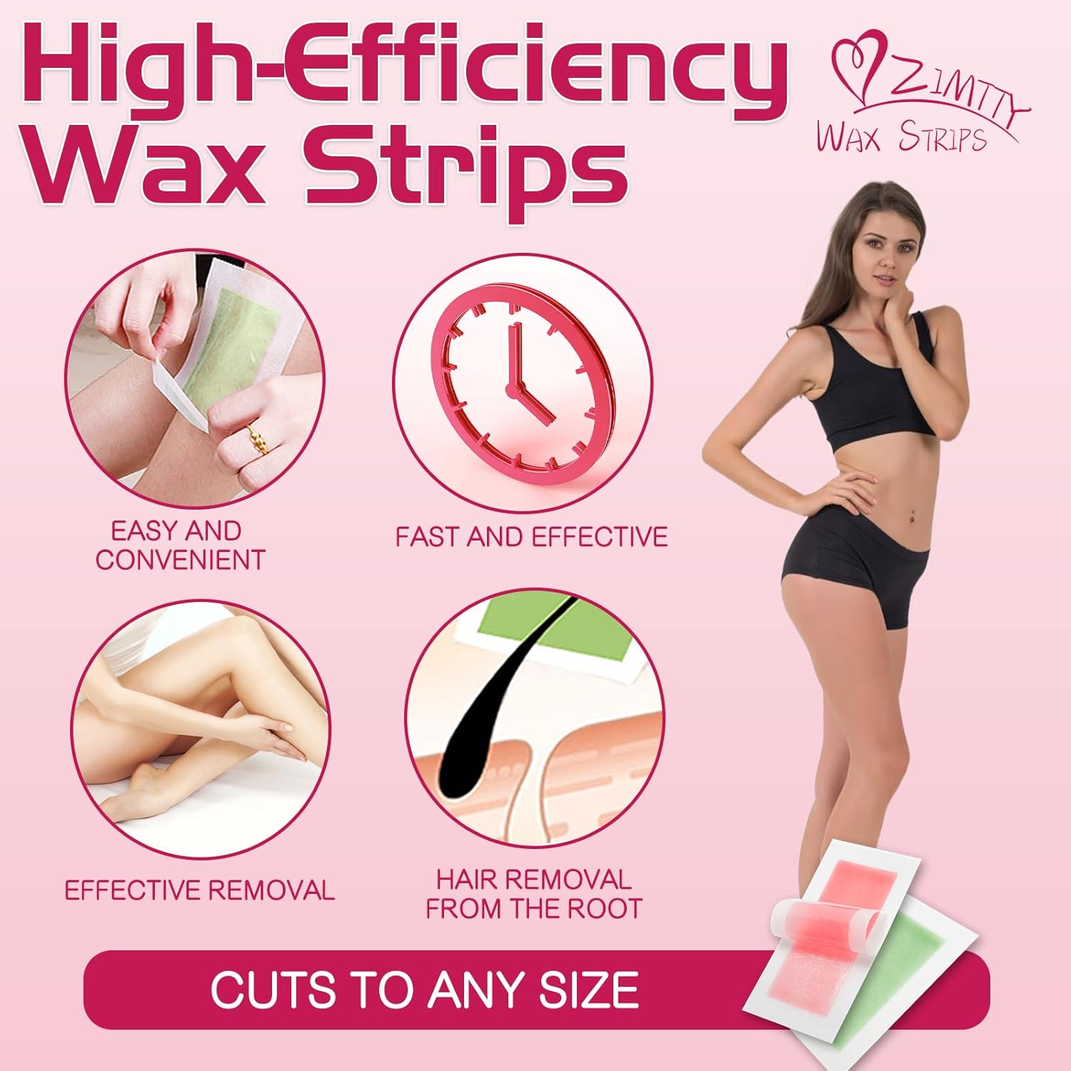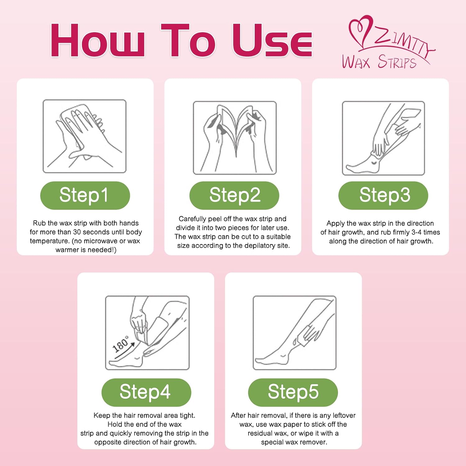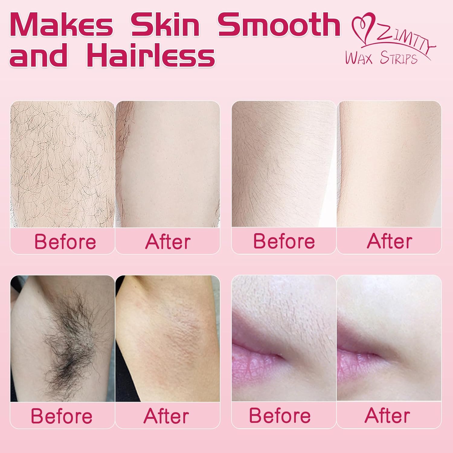Gentle on Your Skin, Safe – Zimtty Waxing strips are specially designed for hair removal. Wax strips for hair removal are composed of naturally derived ingredients and a safe formula. Gentle on your skin, safe to use, and not messy. Wax Strips effectively remove hair for men and women, gently to the skin at home waxing kit.