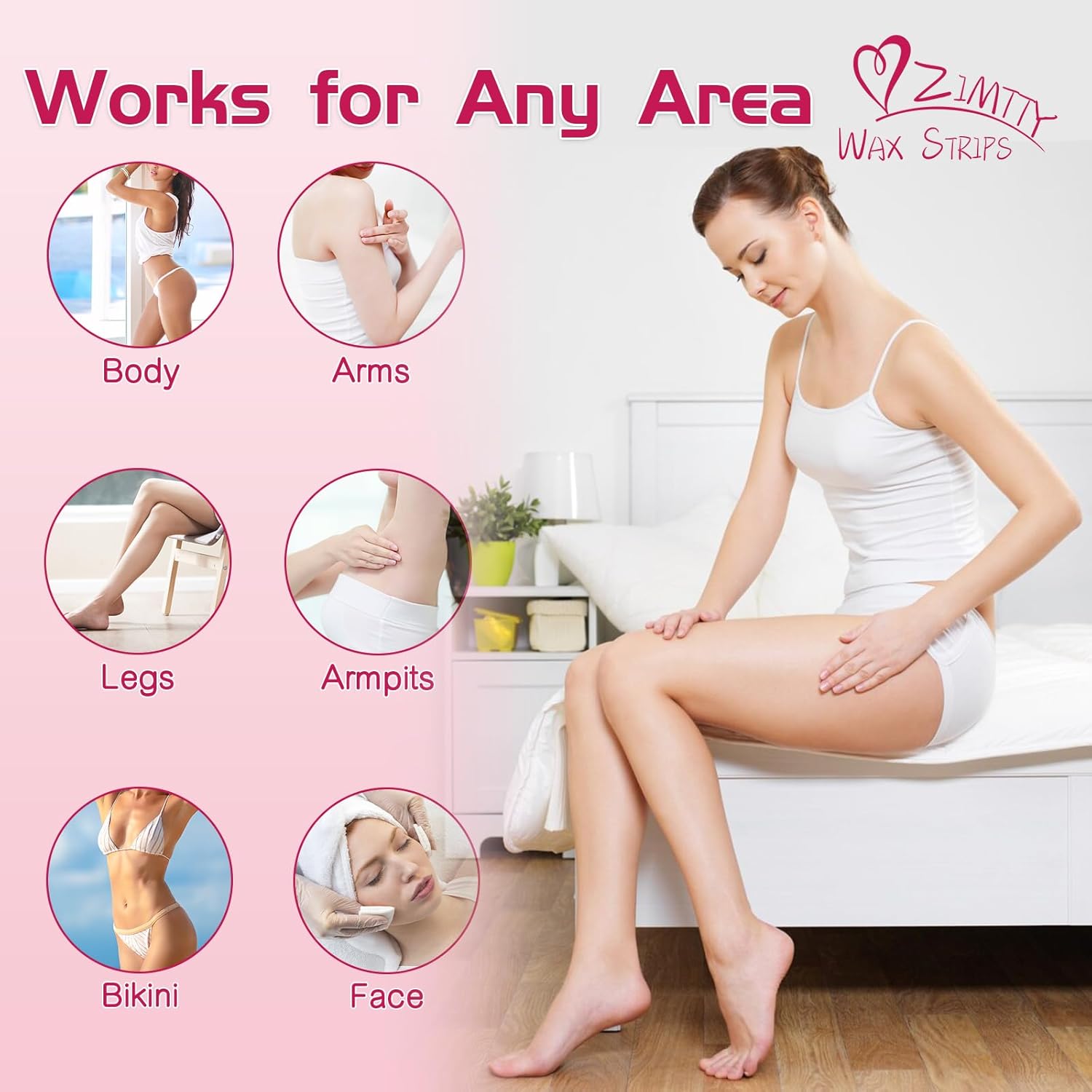 Gentle on Your Skin, Safe – Zimtty Waxing strips are specially designed for hair removal. Wax strips for hair removal are composed of naturally derived ingredients and a safe formula. Gentle on your skin, safe to use, and not messy. Wax Strips effectively remove hair for men and women, gently to the skin at home waxing kit.