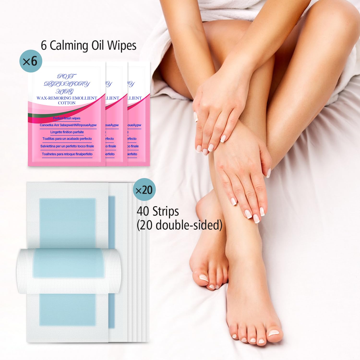 Package Includes: 40 wax strips + 6 calming oil wipes. Easy to carry and easy to use. To pay attention to more operation details and precautions please read the pictures or detail page carefully