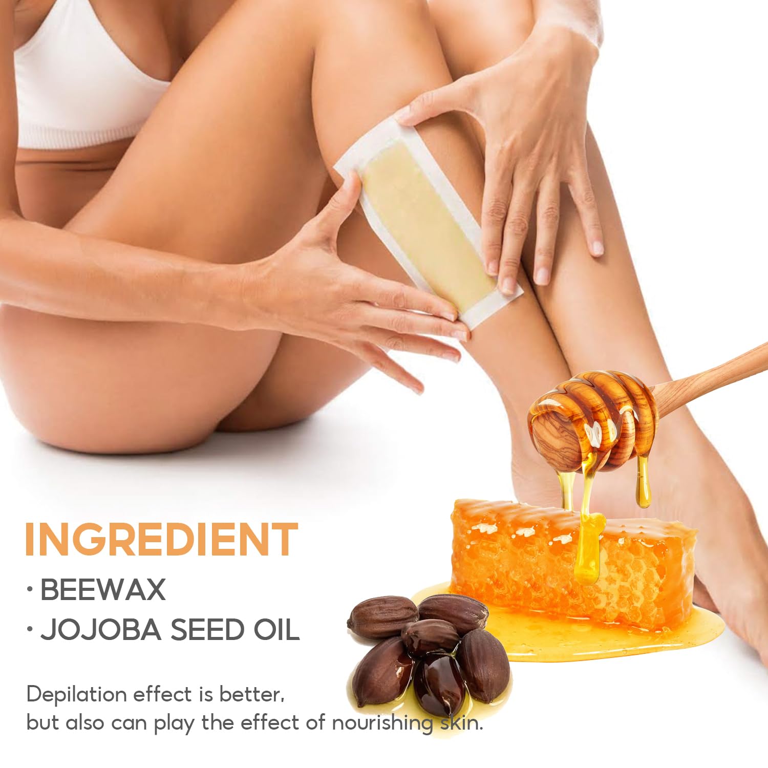 ⭐Hair removal wax strips are made from natural beeswax essence and jojoba seed oil. Naturally extracted and gentle on the skin, it not only removes hair roots, but also achieves long-lasting, clean and smooth results. Use on upper lip, cheeks, chin, hands, arms, chest, belly, back, bikini area and legs. For sensitive areas such as the face, bikini, and armpits, please do not repeat hair removal too much