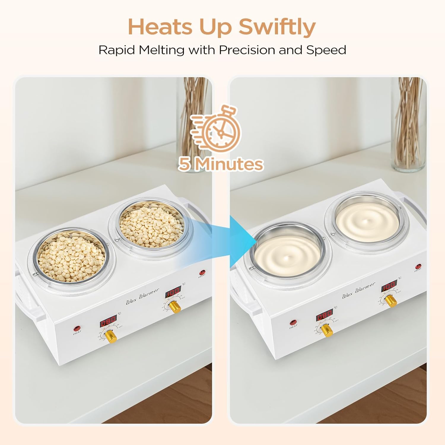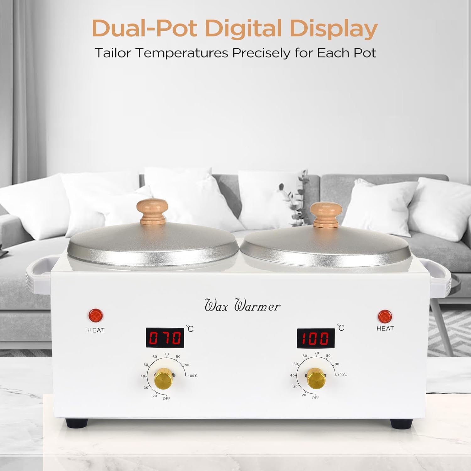 Wax Warmer for Hair Removal Professional, Double Wax Pot, Wax Heater Machine, Digital Waxing Kit for Women, Spa Salon Beauty Home Wax Kit for Hair Removal with Adjustable Temperature