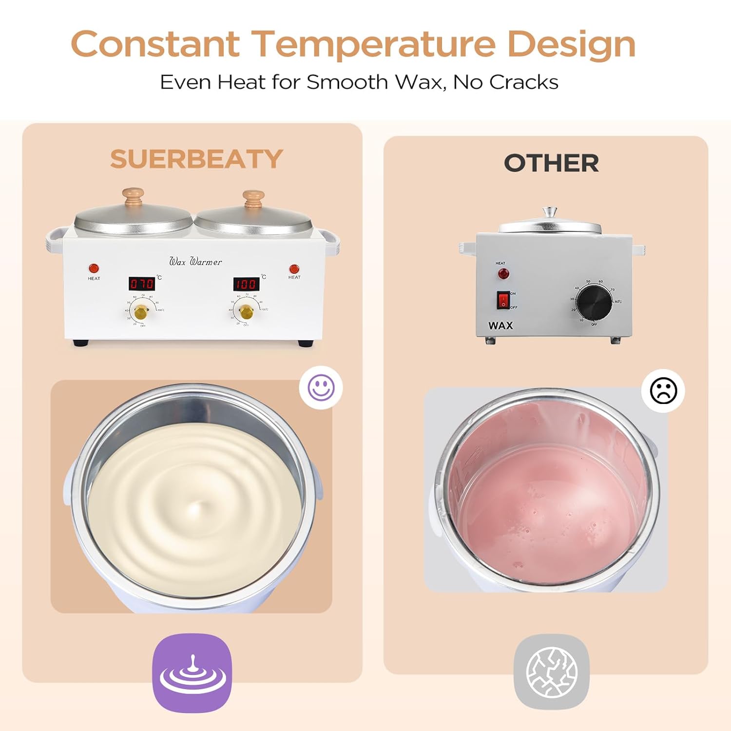 Precise Temperature Regulation: SUERBEATY wax heater machine quipped with professional temperature control technology, our wax warmer provides consistent, even heat. This ensures a smooth wax application, preventing the wax from cracking and enhancing your waxing experience.