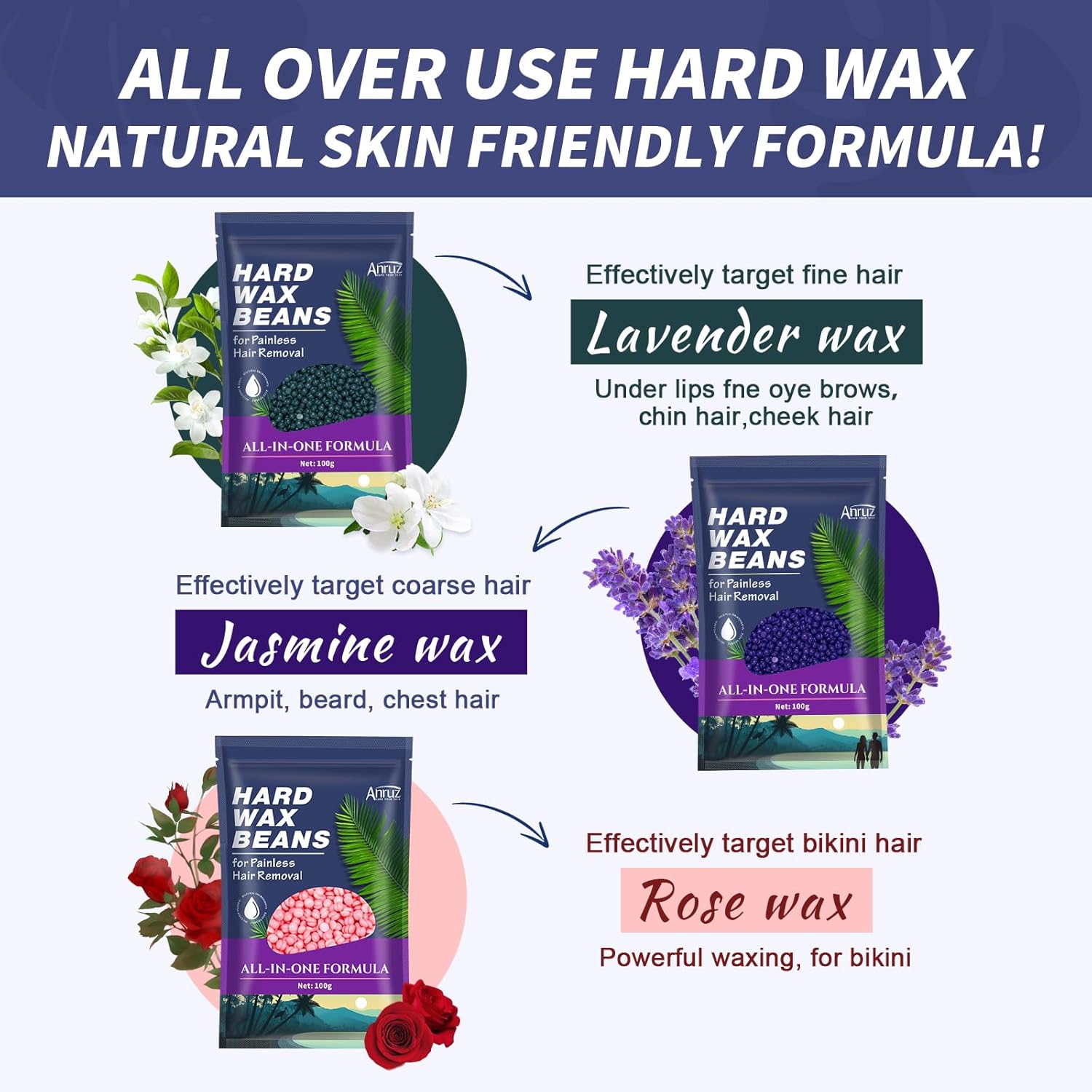 💜【100% Satisfaction Guarantee】No matter for what reason you are not satisfied with Anruz hair removal waxing kit, let us know, we will give you a full refund or send you a new replacement. Don’t worry about buying products you don’t like. Are you ready to wax at home?