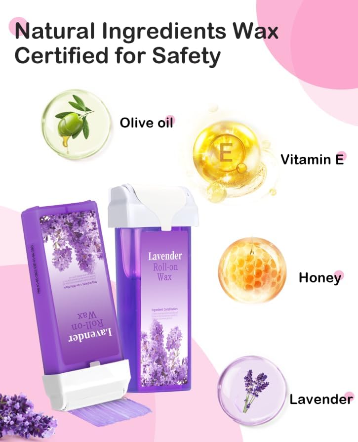🌿 Natural Ingredients, Certified Safety: Our lavender-infused formula reduces sensitivity, making it suitable for most users. Lavender soothes and calms the skin, providing a smooth, irritation-free waxing experience. Ideal for hair removal, these wax roller refills are praised by professional salons for ensuring a smooth finish. Enjoy a salon-quality waxing experience at home, nourishing your skin and providing a soothing waxing session.