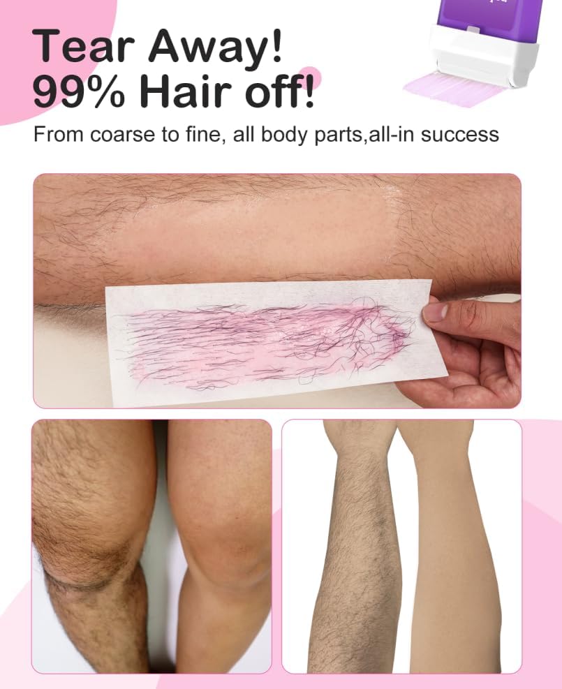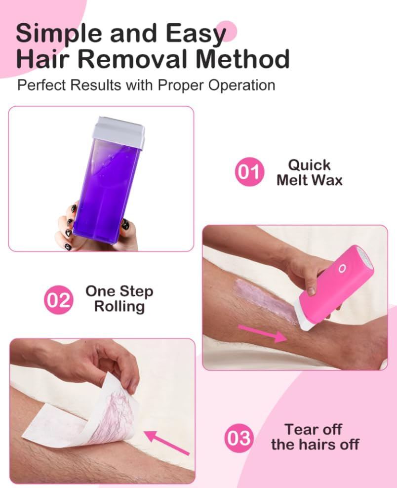 🔥Precision Temperature Sensing for Safe: WaxPro roll on wax kit:No Burns, Just Warmth! Precision temperature sensing for a safe and comfortable waxing experience. This kit solves the problem of wax heating too hot, causing burns, or not heating enough, leading to ineffective results. It provides a comfortable hair removal experience, especially for sensitive skin.