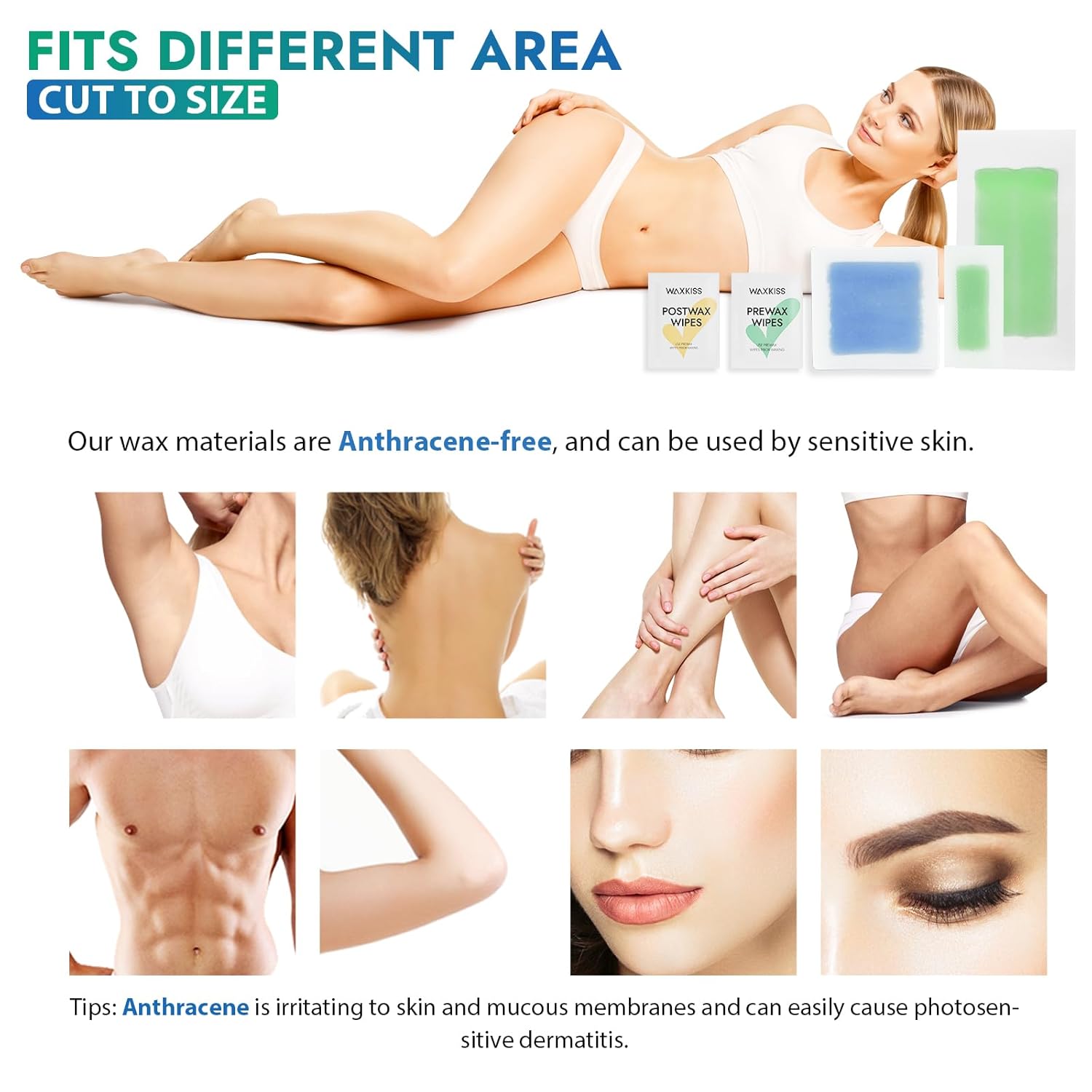 MEET YOUR DIFFERENT NEEDS – Wipe your skin with the contained prewax wipes. Stick it on and peel it off. Whether it’s fine, soft or coarse hair, it only takes a few seconds to get a silky smooth finish. Waxkiss Hair Removal Wax Strips Kit is suitable for face, lip, eyebrow, neck, arm, leg, bikini area and underarm hair removal.