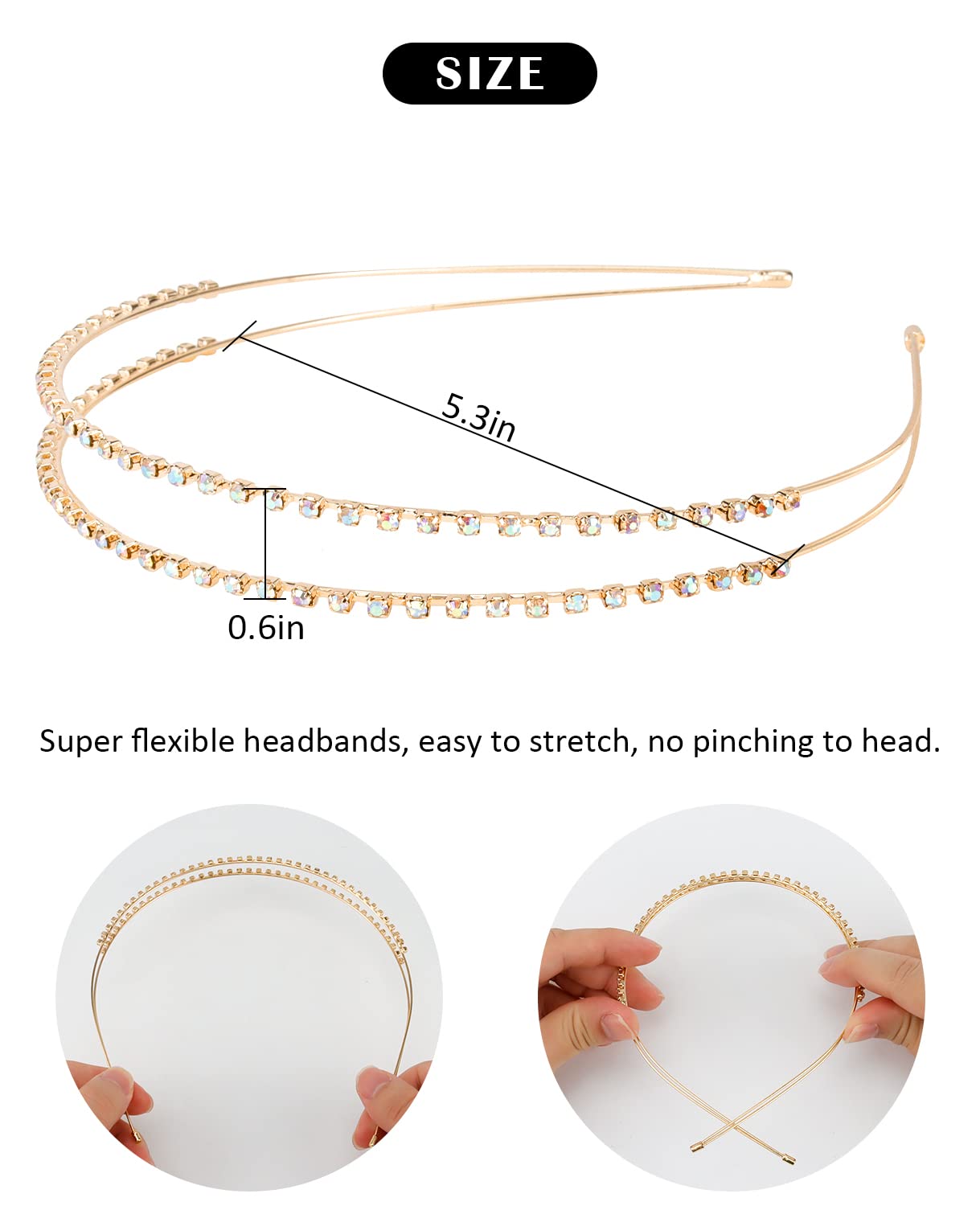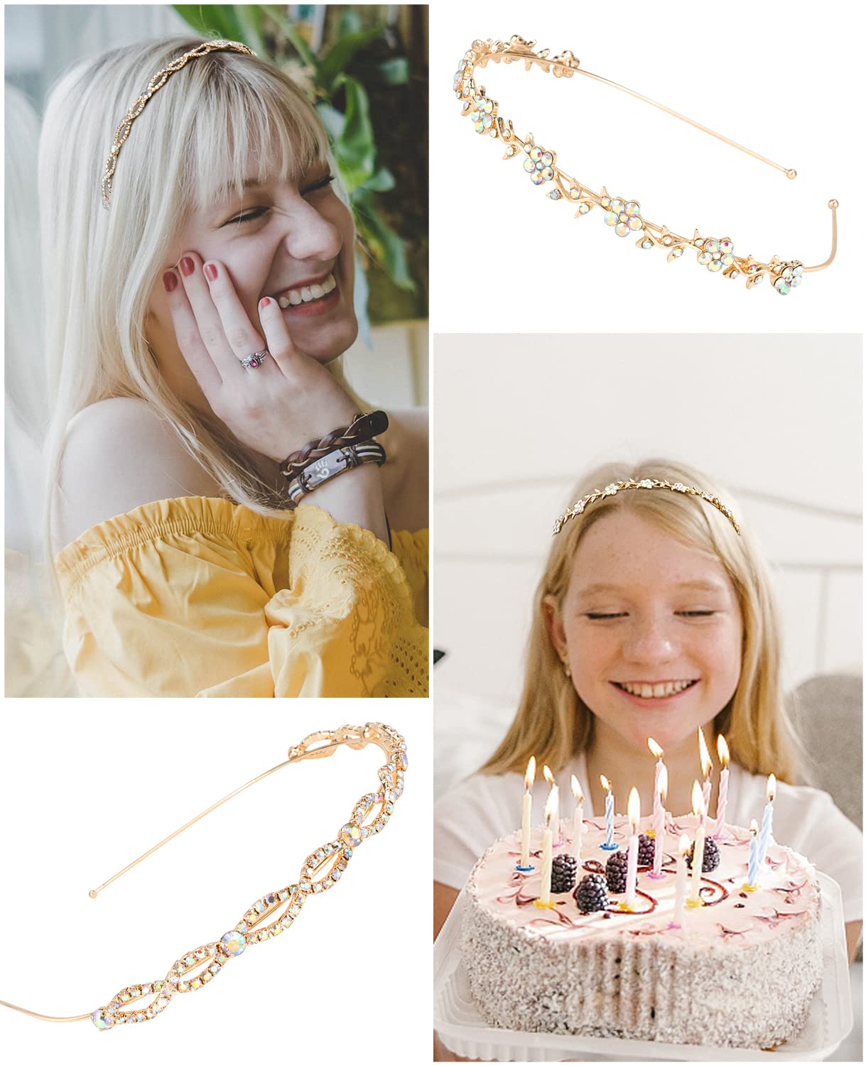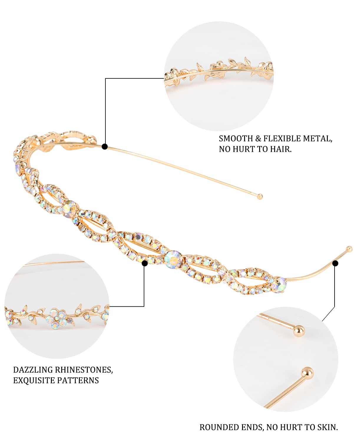 Delicate metal headbands: Sparkly rhinestone headbands for women and girls, exquiste details, shines in sunlight and under room light, make you feel like a princess/queen.