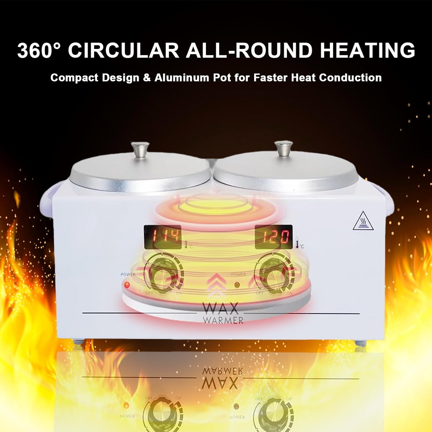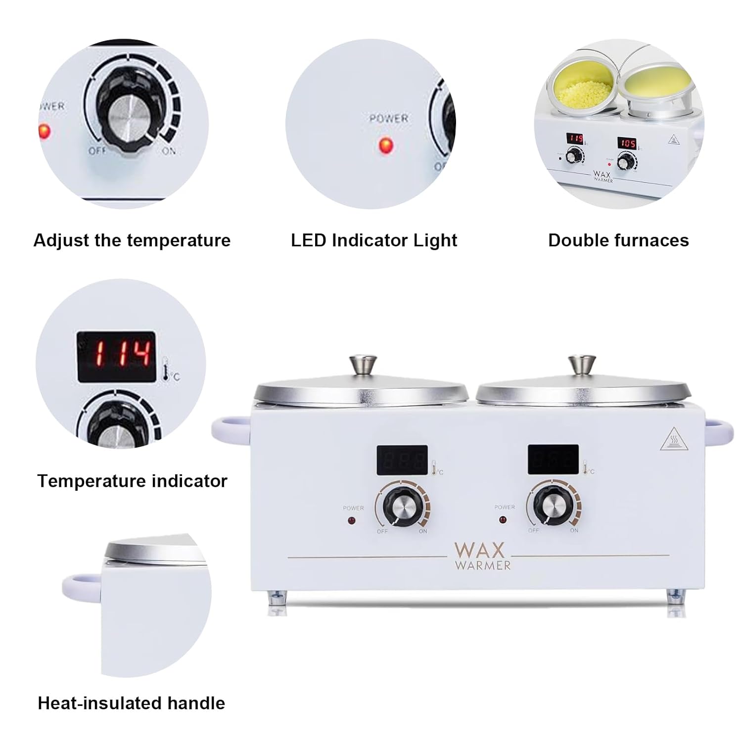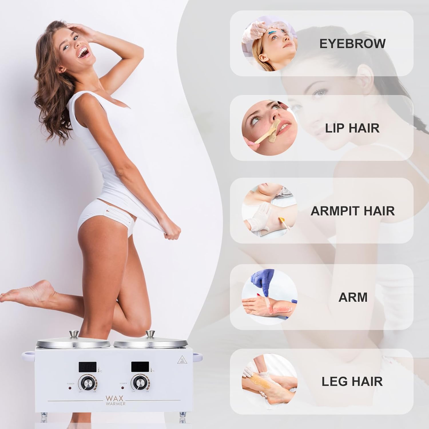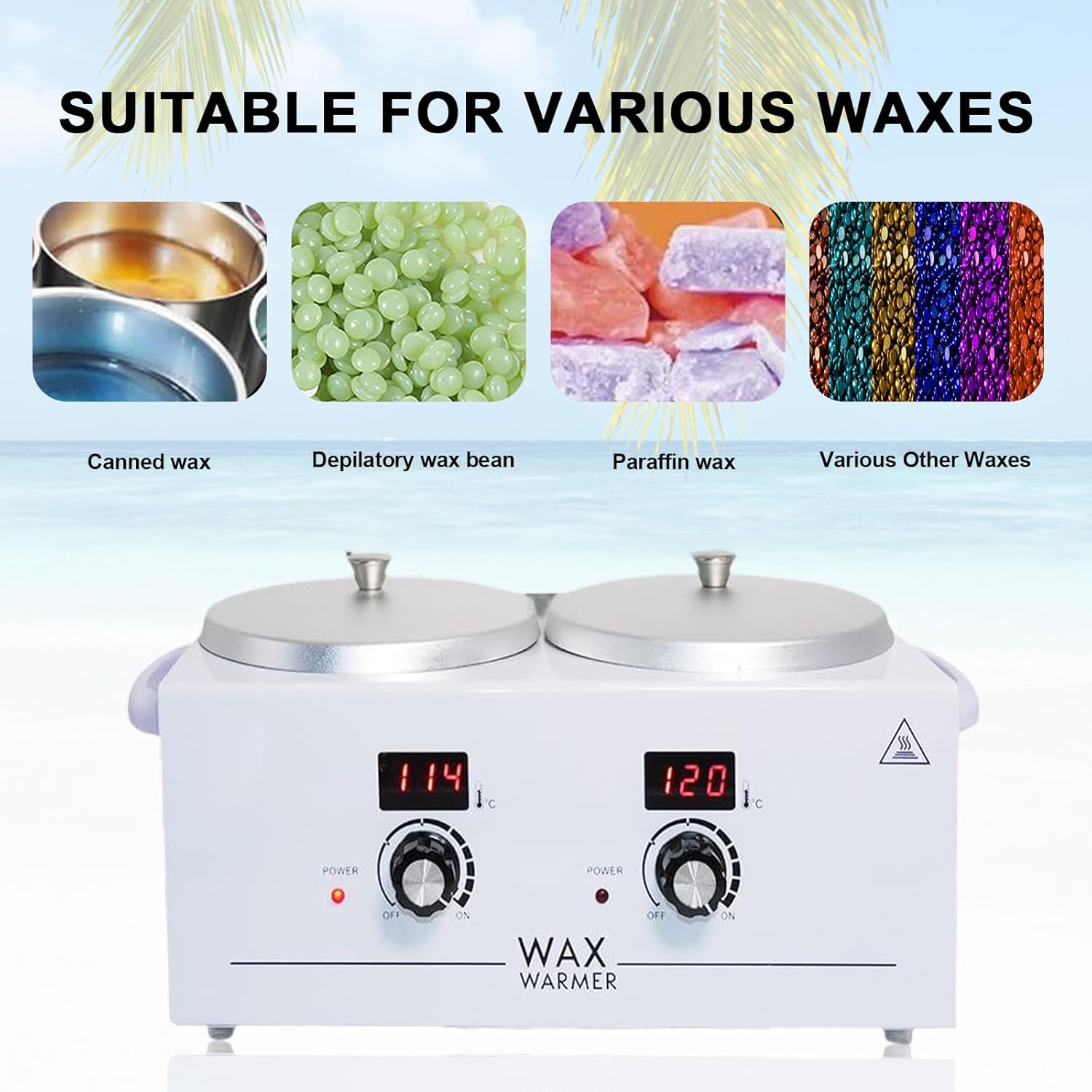 White Double Pots Wax Warmer Professional Melted Wax Beads for Hair Removal,FAST Electric Wax Heater with Adjustable Temperature Set for Women (White-Double Pots)