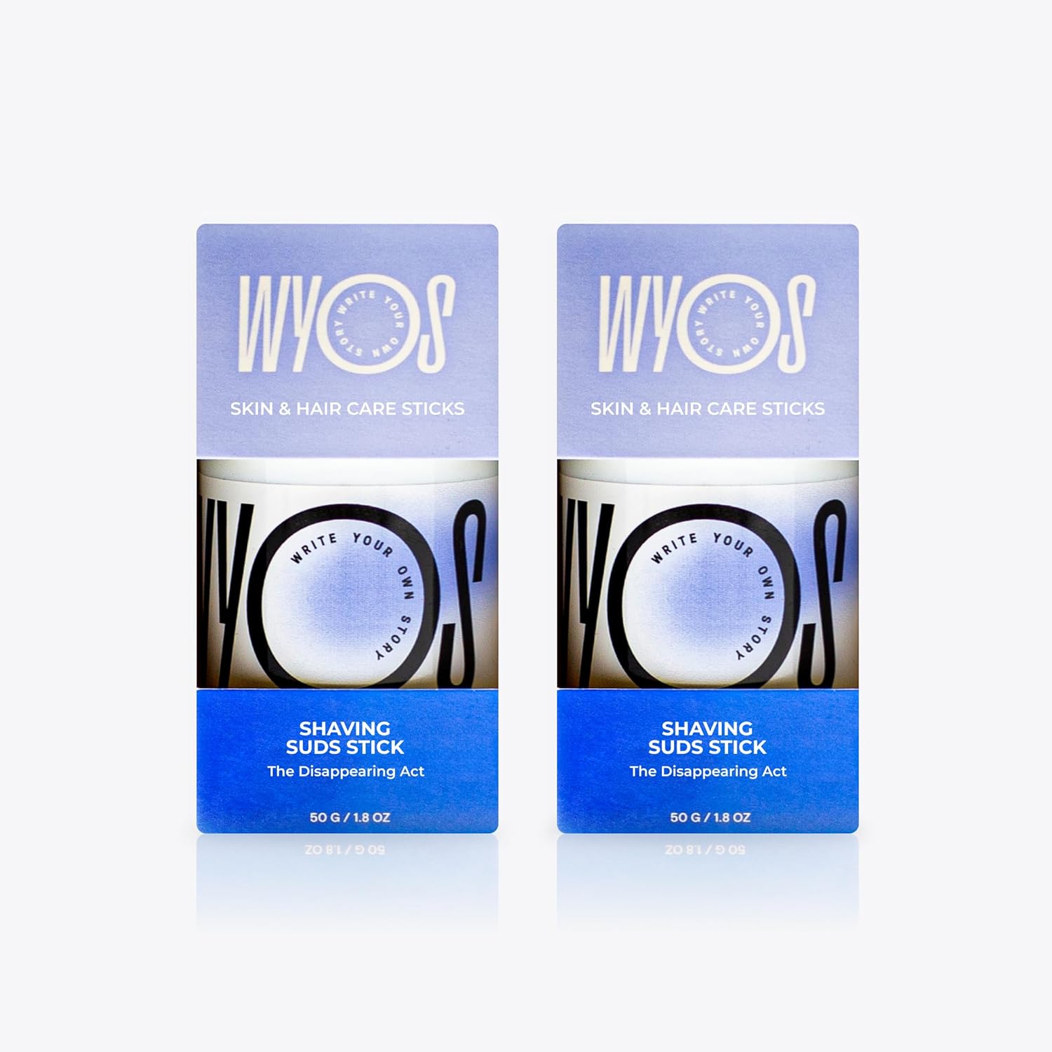 WYOS Shaving Cream Sticks 2 Pack, Travel Size, Vegan, Cruelty Free, Clean Label, Sulfate Free, Paraben Free, Leak Free, No Mess, Hydrating Smooth Lather, Sensitive Skin Close Shave For Women and Men