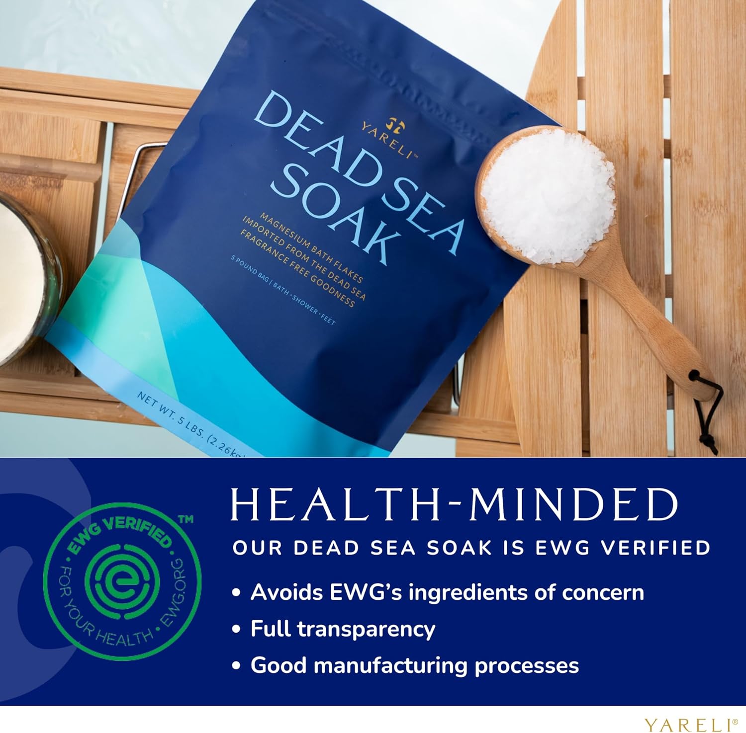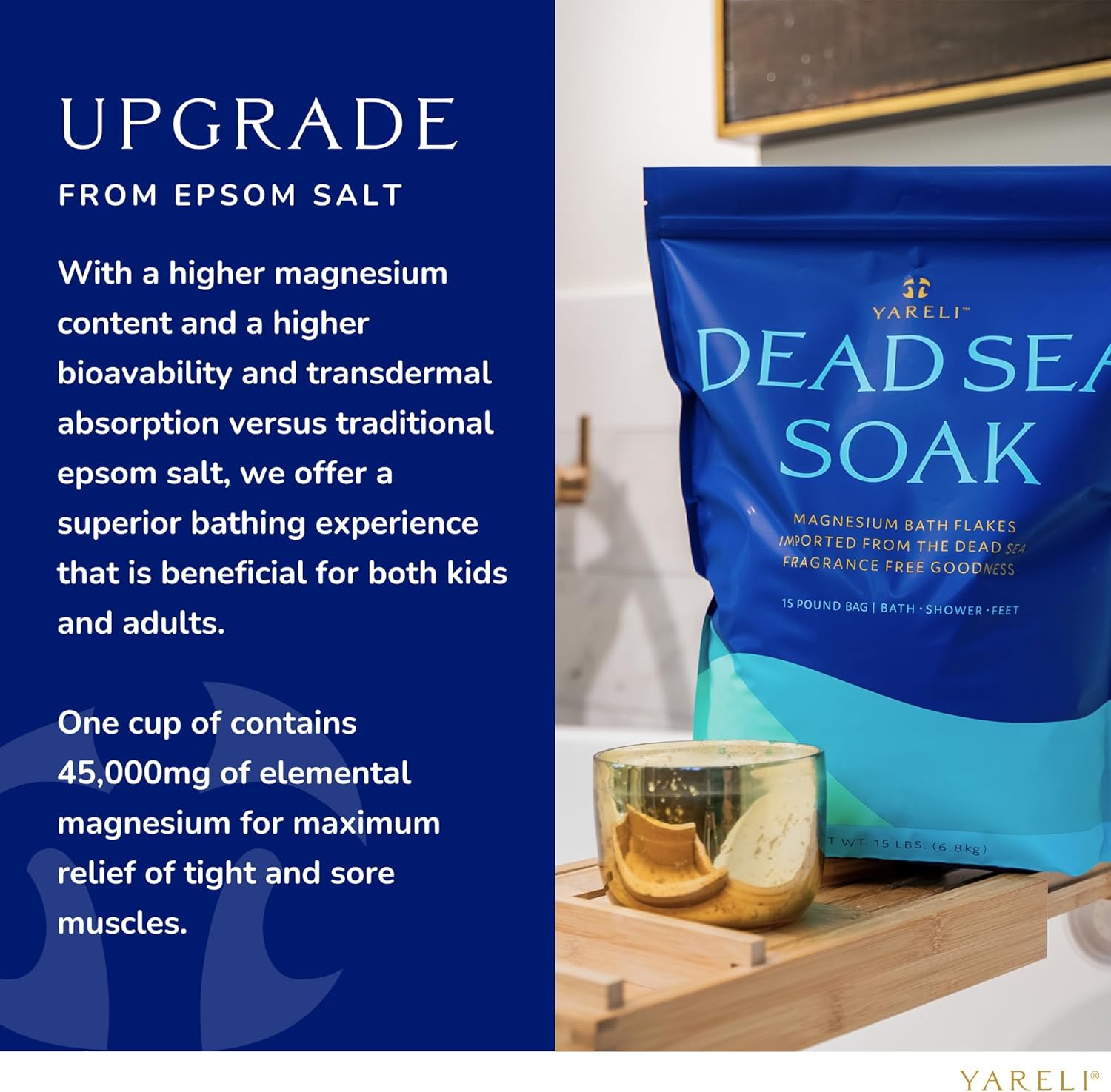 Yareli Dead Sea Bath & Foot Soak, Unscented Magnesium Bath Salt Flakes, Alternative to Epsom Salt, 15lbs with Over 800,000mg of Elemental Magnesium Per Bag
