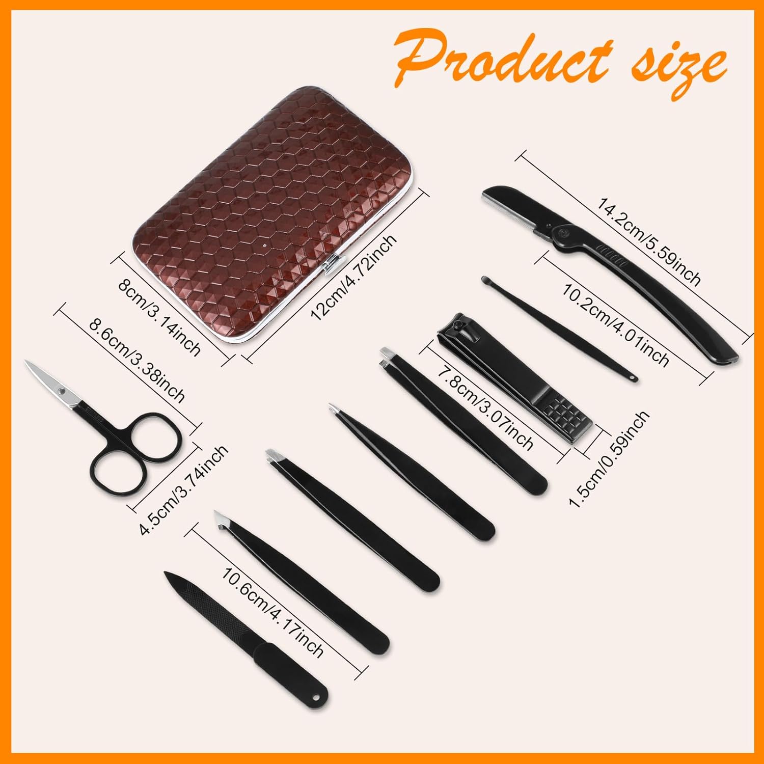 Value Tweezers and Clippers Set: 9pcs tweezers set come with 4 precision stainless steel eyebrows tweezers,1 curved eyebrows scissors, 1pcs eyebrow razor, 1pcs nail clipper, 1pcs nail file and 1pcs earpick. Each tool is elaborately made and can meet all kinds of daily care needs in daily life,one set in the hand,living at ease.