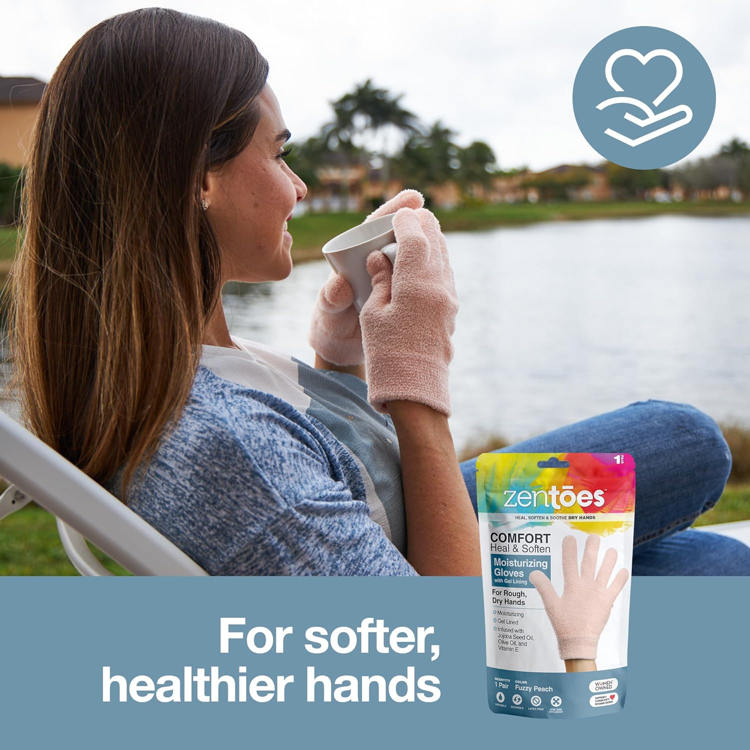 ZenToes Moisturizing Gloves with Gel Lining – Dry Hands Treatment – 1 Pair Hydrating Cracked Hand Healing Gloves – Repair Rough, Chapped Skin Overnight (Fuzzy Peach)